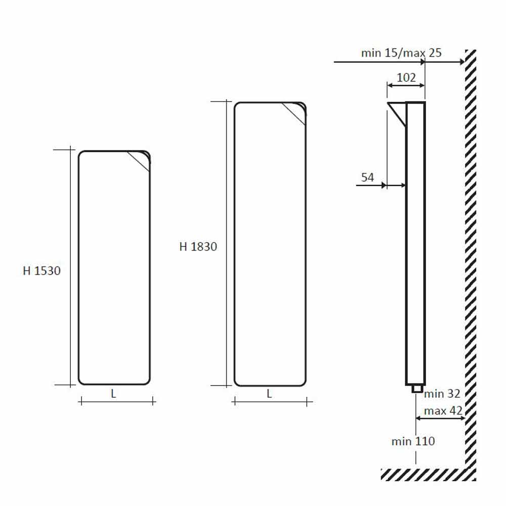 - V 1530 x D 375 x Inter. 50 x P 48 mm x výstup w (Δt50 °) 385; Výtěžek w (At30 °) 197; Výtěžek w (At 26 °) 166