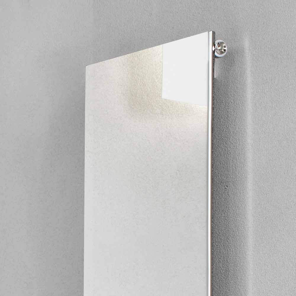 Vertikální nástěnný radiátor z reflexní nerezové oceli s držákem na ručníky vyrobené v Itálii.