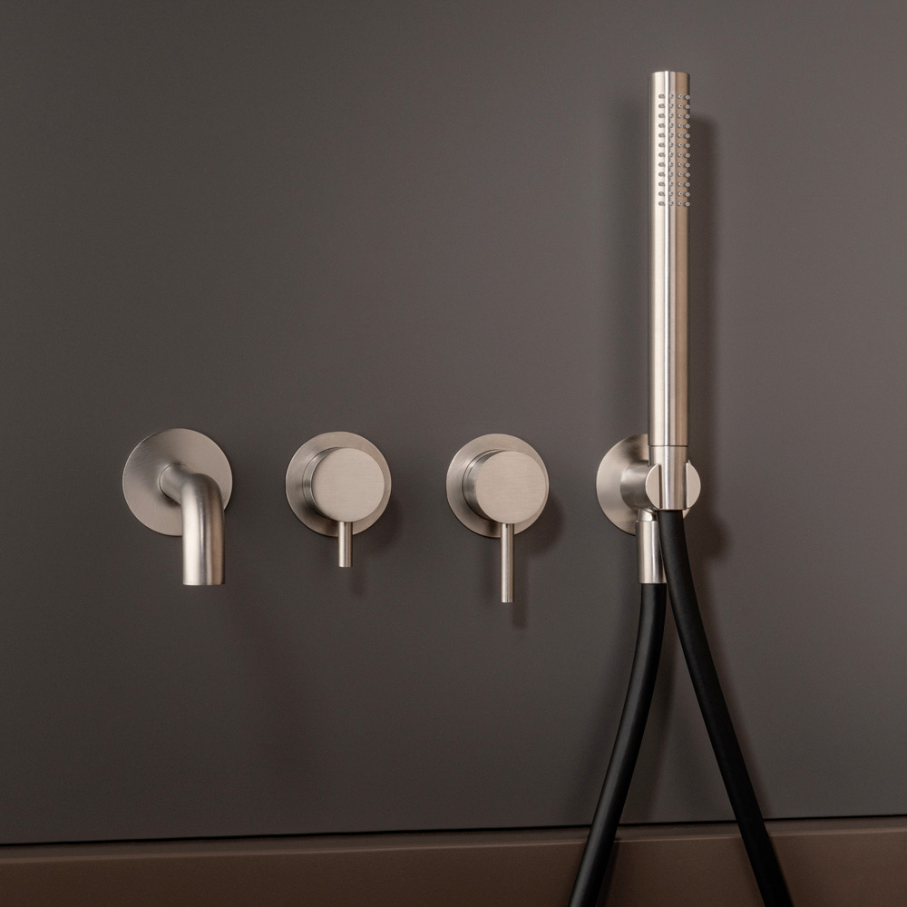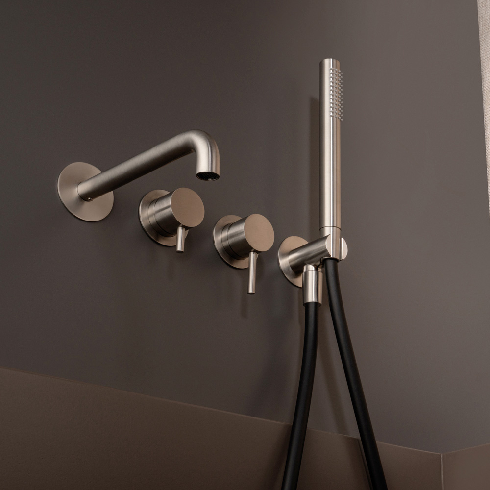 Vestavná vanová baterie s přepínací pákou a výtokem, se 4-otvorovou sprchou Made in Italy