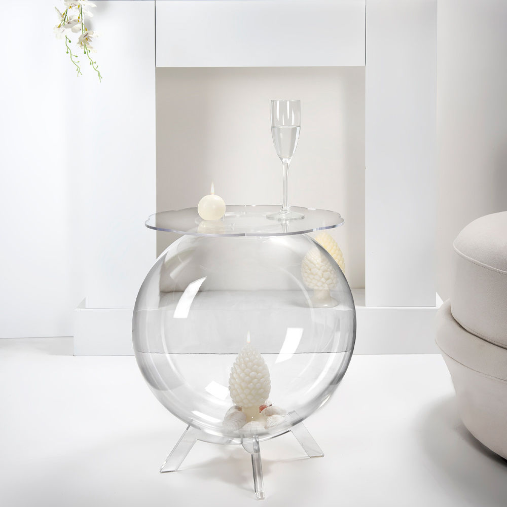 Jeho kulovitý tvar, odvážný a čistý, se promění podle vašich potřeb: dnes elegantní váza pro vaše květinové kompozice, zítra originální akvárium, které dá nový život vašemu prostředí, nebo praktický kontejner na hračky nebo prádlo, který lze nenápadně poznamenat. Jeho průhlednost je pozvánkou k vyjádření vaší kreativity, k naplnění a zdobení podle momentální inspirace, aniž byste kdy zatěžovali prostředí.