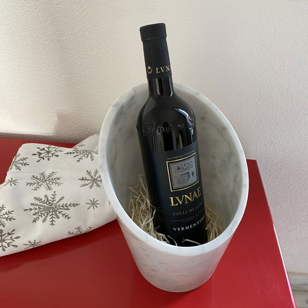 Moderní glacette na víno nebo šampaňské z bílého mramoru Carrara Marquinia Made in Italy.