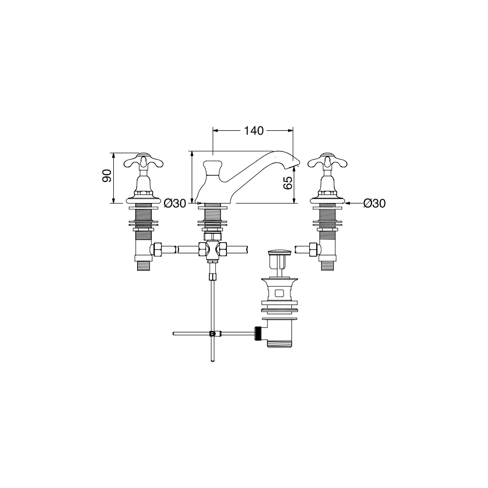 Mosazné tříotvorové splachovací umyvadlo ve vintage stylu, Klarisa, vyrobené v Itálii.