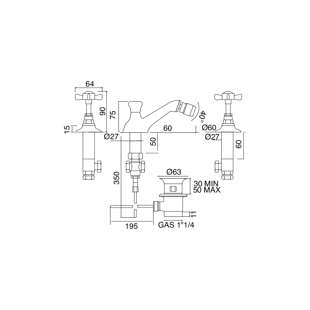 3otvorová bidetová baterie ve vintage stylu vyrobená v Itálii společností Katerina brass.