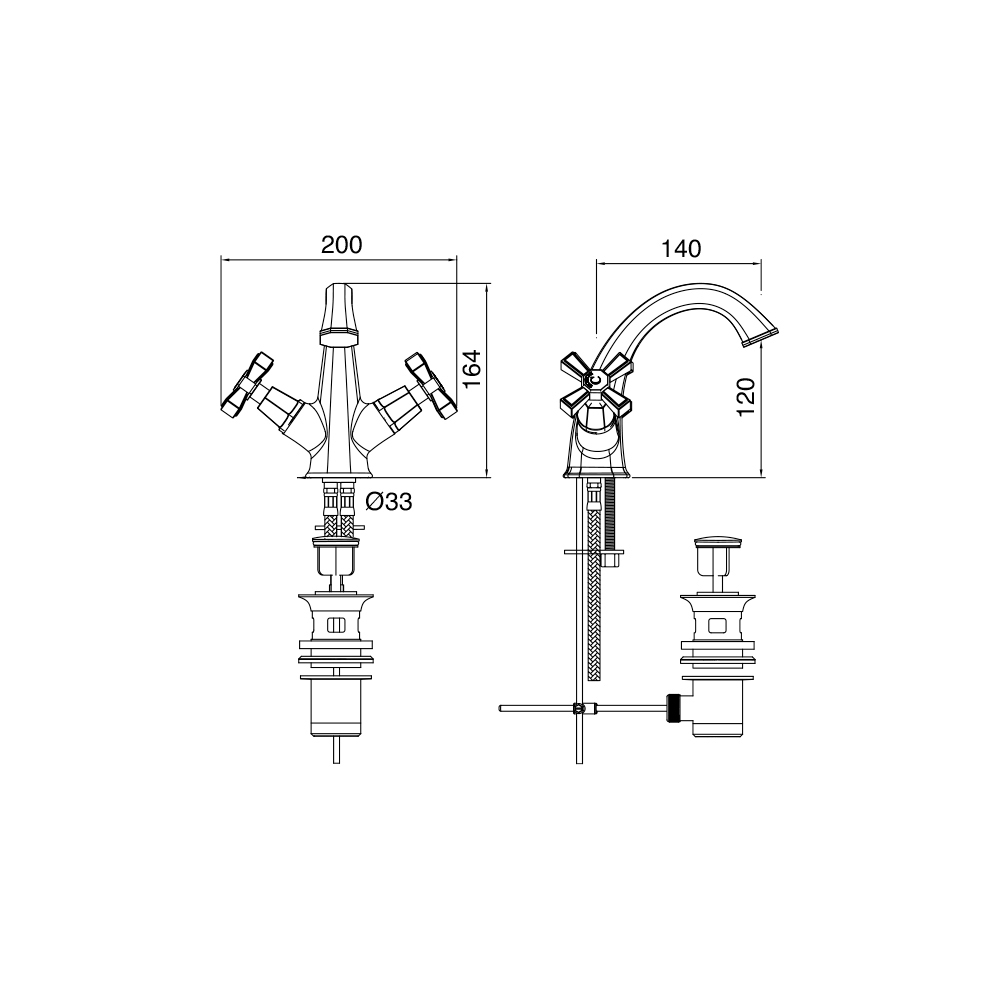 jednootvorová mísová baterie s odtokem, vyrobená z mosazi.