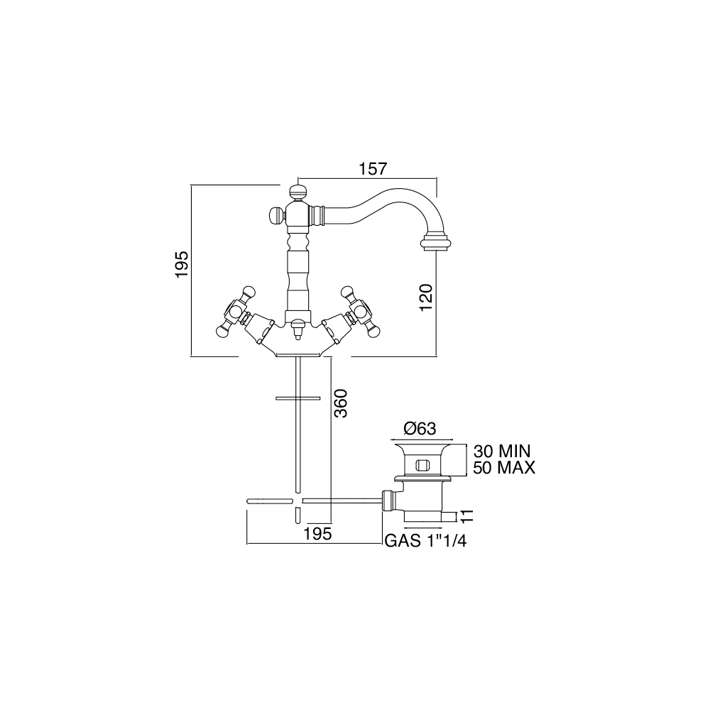 Jednootvorová umyvadlová baterie ve vintage designu z mosazi Ursula, vyrobená v Itálii.