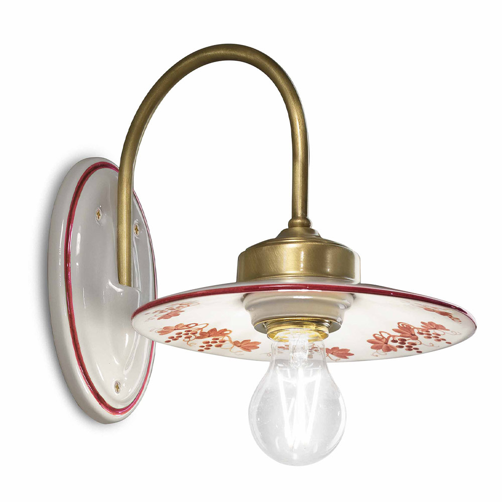 Ručně malované železné a keramické nástěnné svítidlo, vintage design vyrobený v Itálii od Ferroluce.