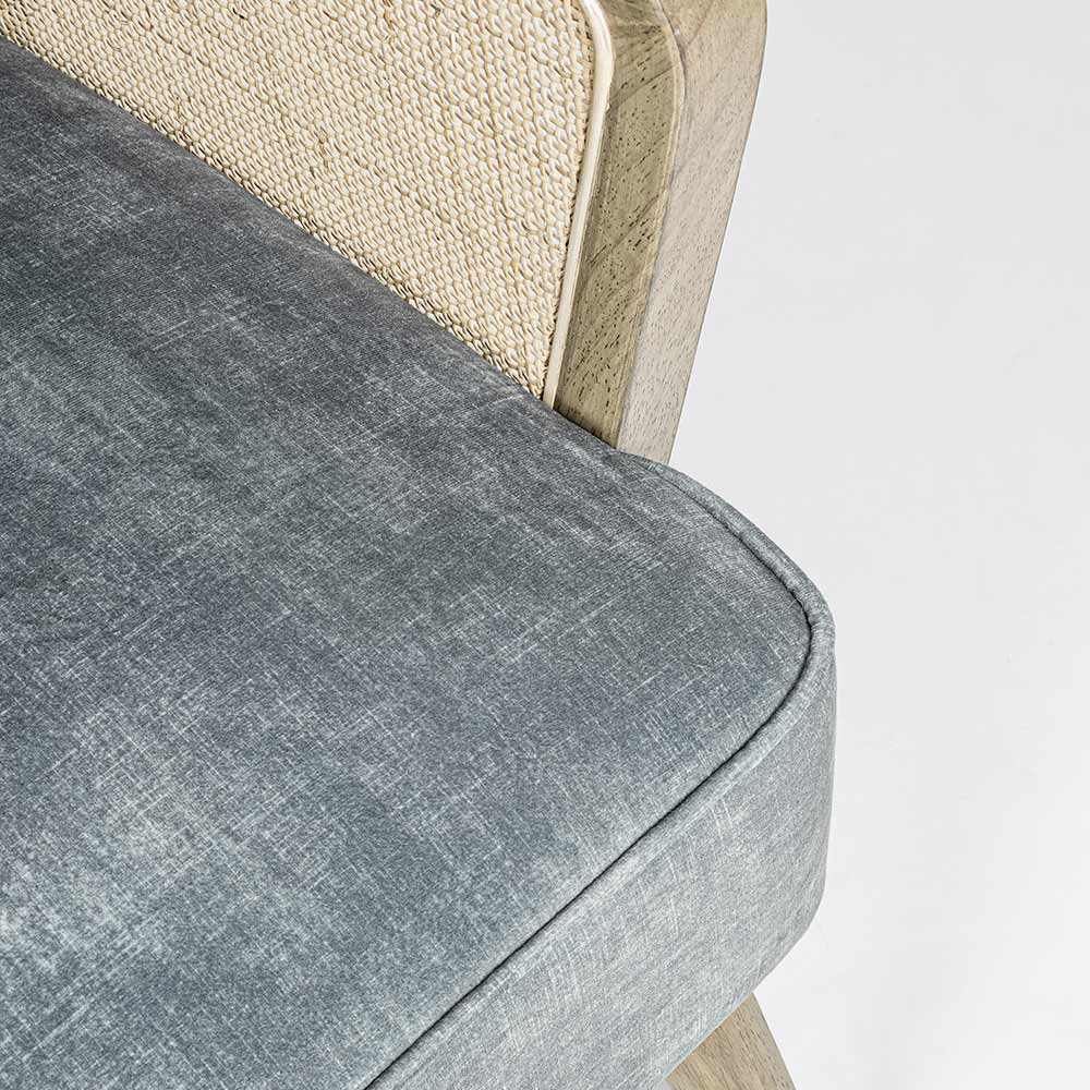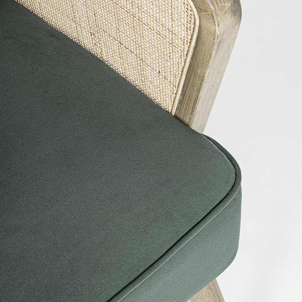 Vintage křeslo z kaučukového dřeva a područky s ratanem, sedák z polyesteru 2 povrchové úpravy.