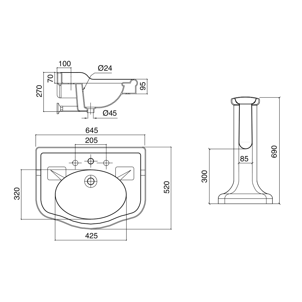 - Š 64,5 x D 52 x V 69 cm se splashbackem a splashback lemem 1-3 otvory pro baterie - š 645 mm;