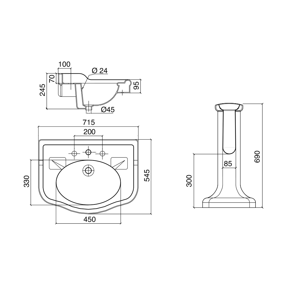 - Š 71,5 x D 54,5 x V 69 cm se splashbackem a splashback lemem 1-3 otvory pro kohoutky - š 715 mm;