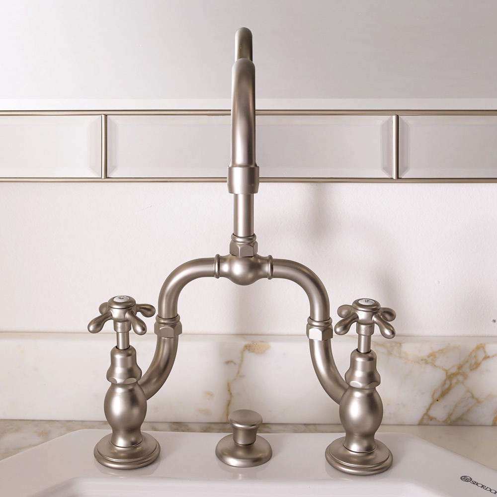 Sada koupelnových umyvadlových baterií s mostem, vyrobená v Itálii, mosazný vintage design, Klarisa.