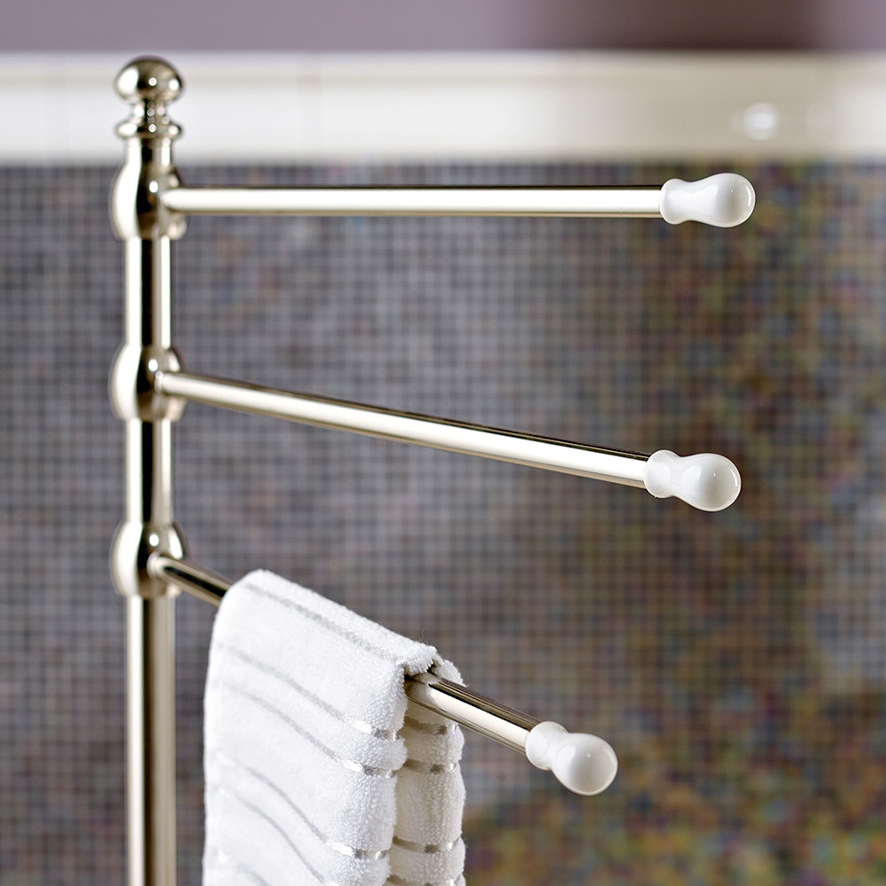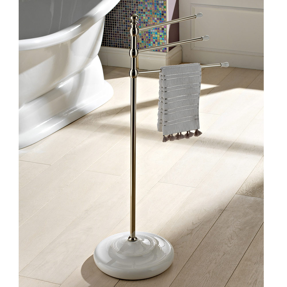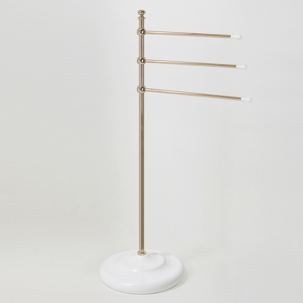 Vintage držák ručníků na podlahu z mosazi a keramiky vyrobený v Itálii, Lyon.
