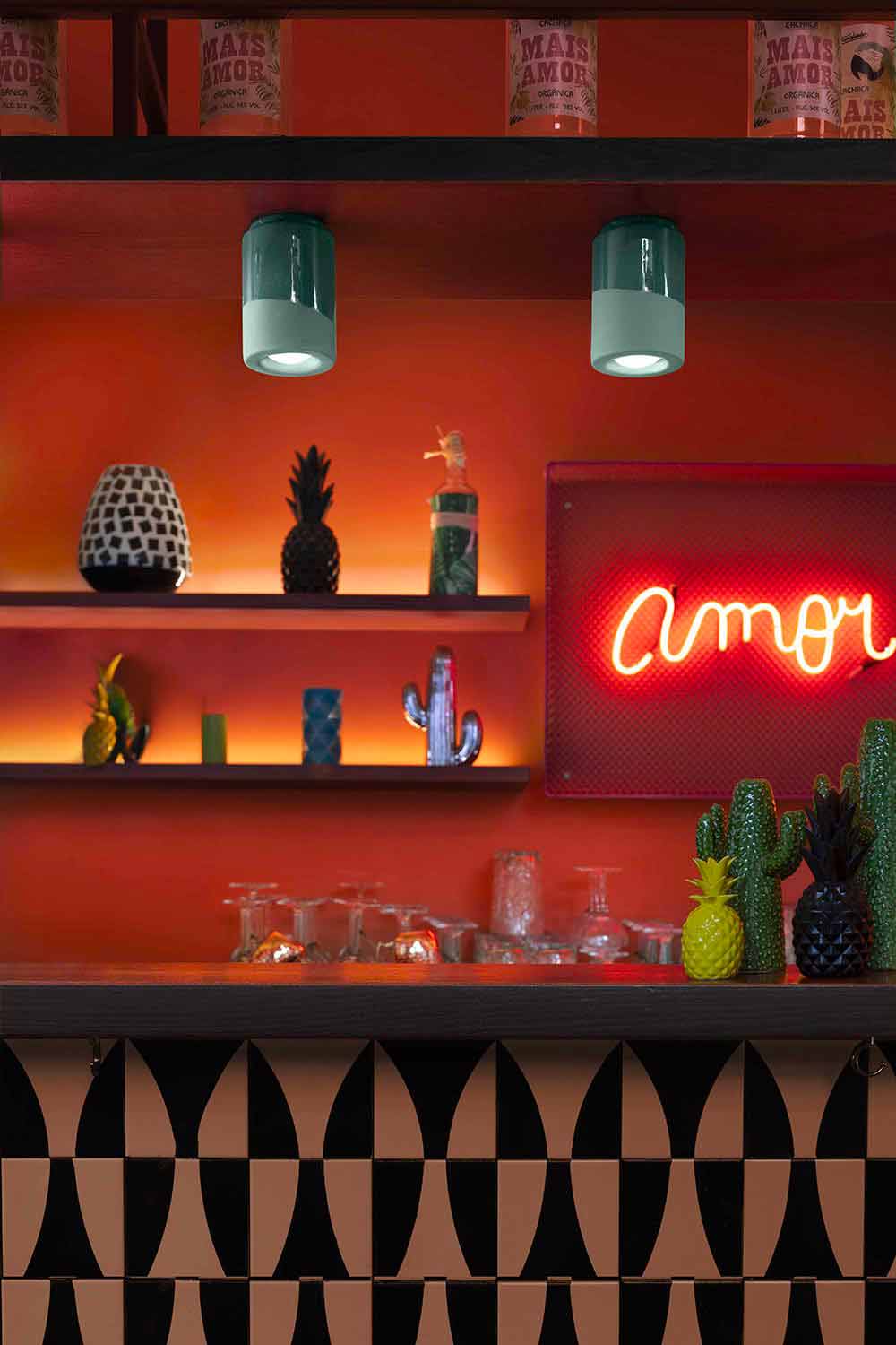 Stropní svítidlo s vintage designem a vysokou kvalitou barevné keramiky, ručně vyráběné v Itálii.