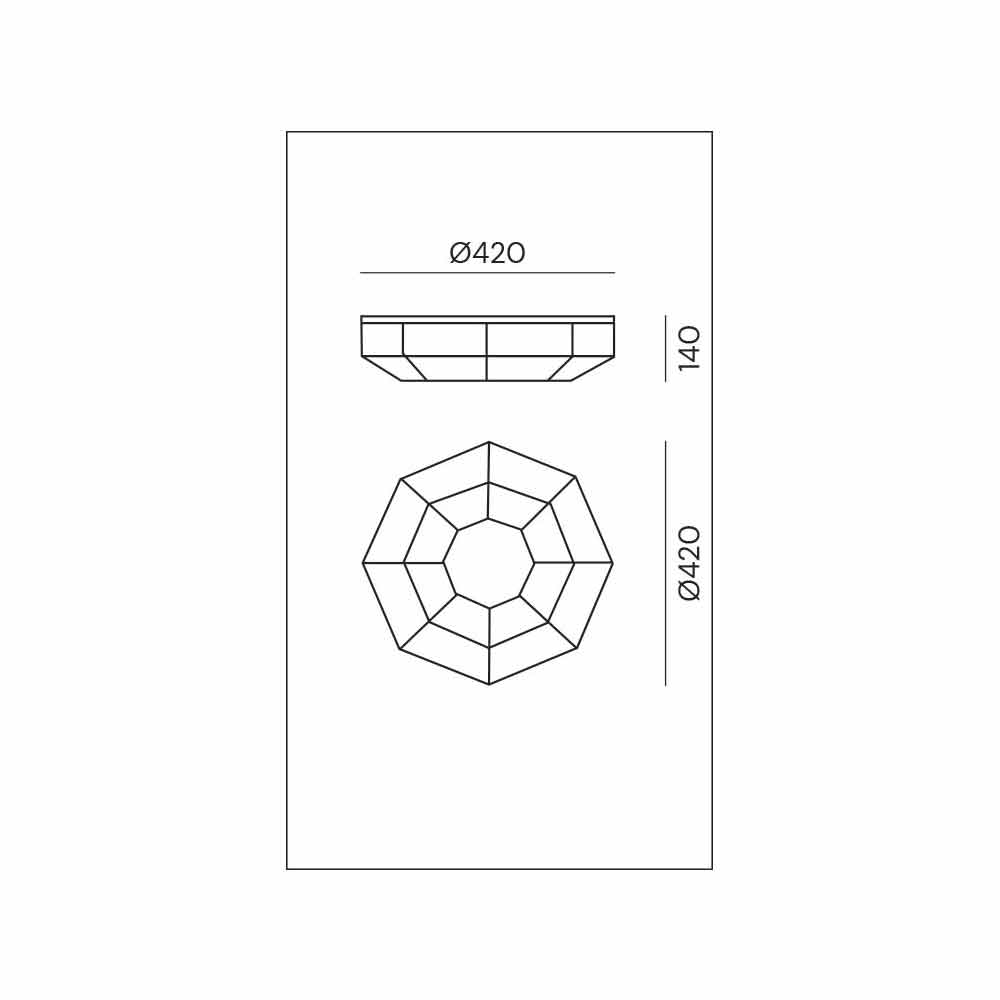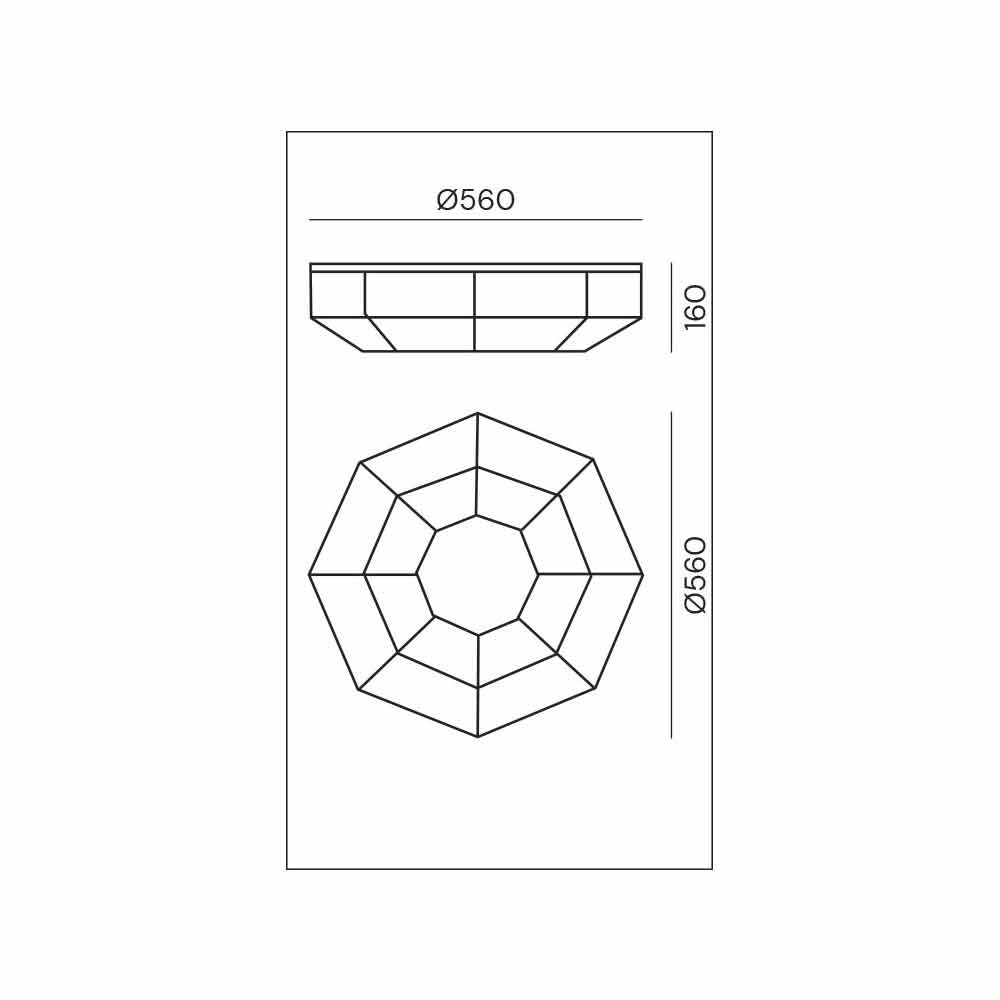 vnitřní stropní lampa je inspirována geometrickými a čistými tvary starověké tradice.
