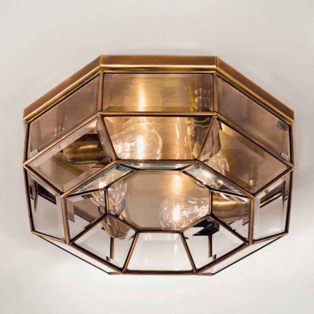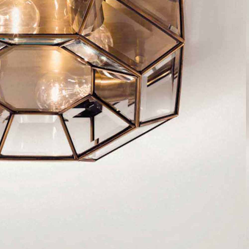 Stropní svítidlo se 4 osmihrannými světly v mosazi a sklem ručně vyrobeného v Itálii.