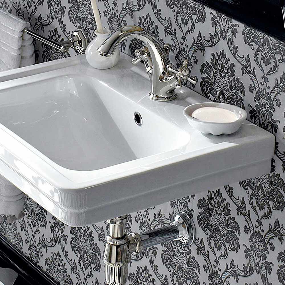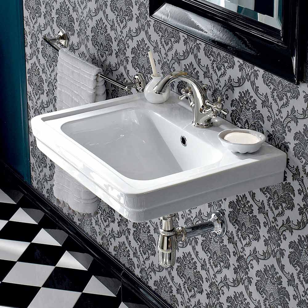 Klasické bílé bílé keramické závěsné umyvadlo vyrobené v Itálii, Marwa.