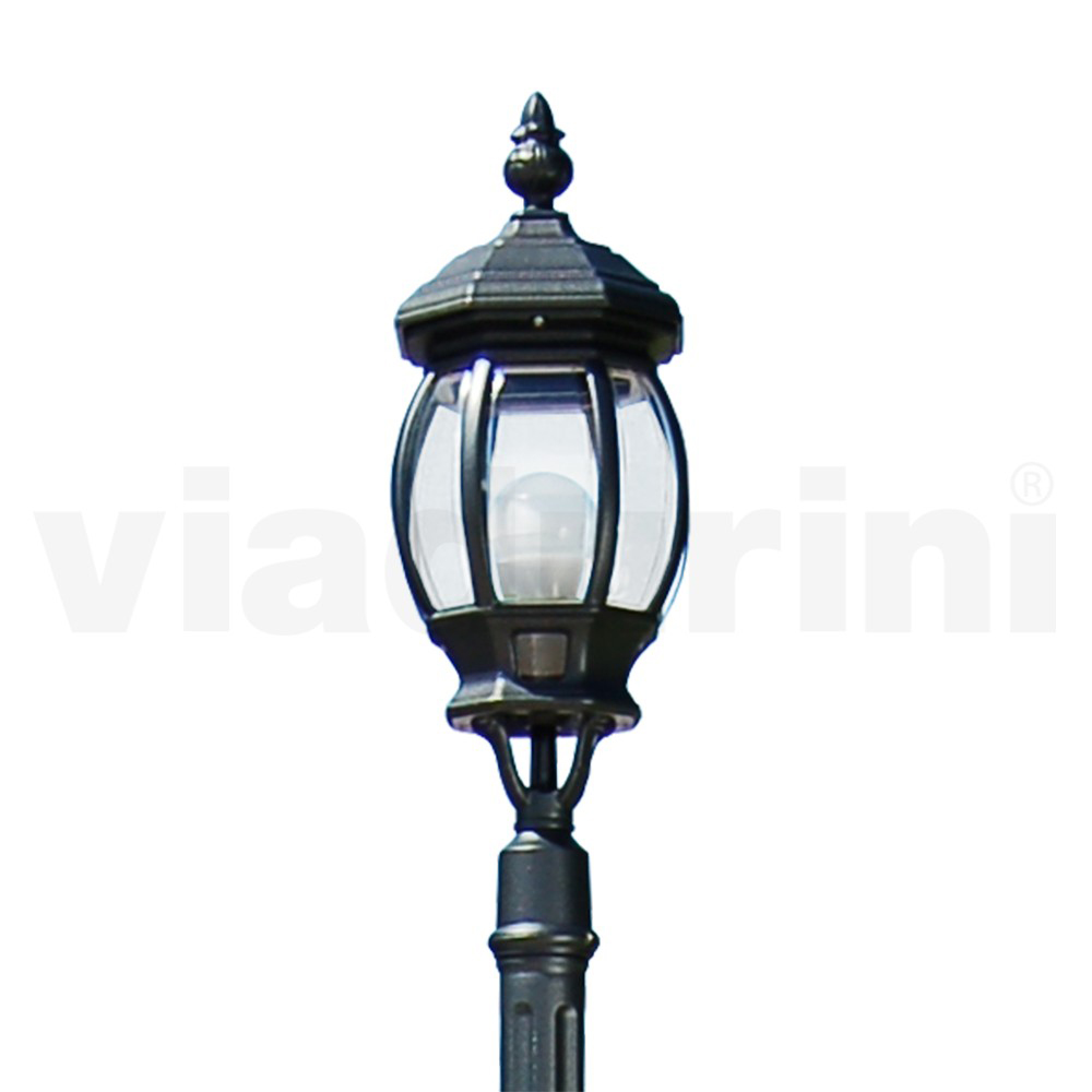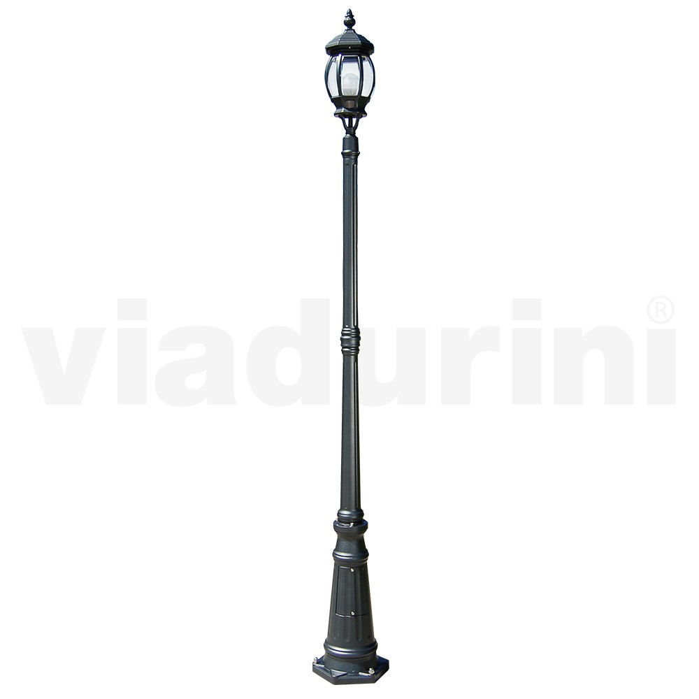 Venkovní pouliční lampa s tlakově litou hliníkovou konstrukcí, antracitově šedým povrchem a průhledným polykarbonátovým difuzorem. Kompletní se šrouby z nerezové oceli. Elegance a funkčnost dávají život tomuto kusu nábytku se silnou vintage osobností, který se vyznačuje romantickou duší a je jedinečný díky zvláštní pozornosti věnované detailům, která pokrývá celou konstrukci a dotváří její vytříbenou estetiku . Ideální pro venkovní prostory, jako jsou zahrady, aleje a chodníky, ale také pro uzavřená prostředí, jako jsou bary a restaurace.