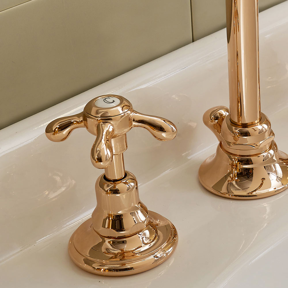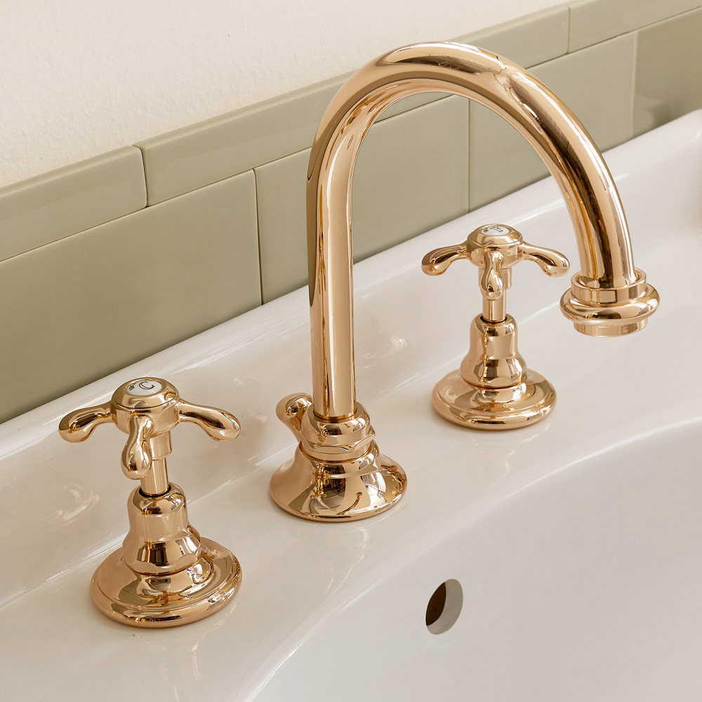 Mosazná umyvadlová baterie s vintage designem vyrobená v Itálii.