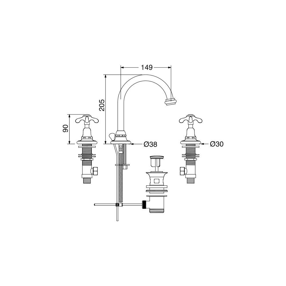 baterie 3otvorová umyvadlová baterie s vysokým výtokem a odtokem..