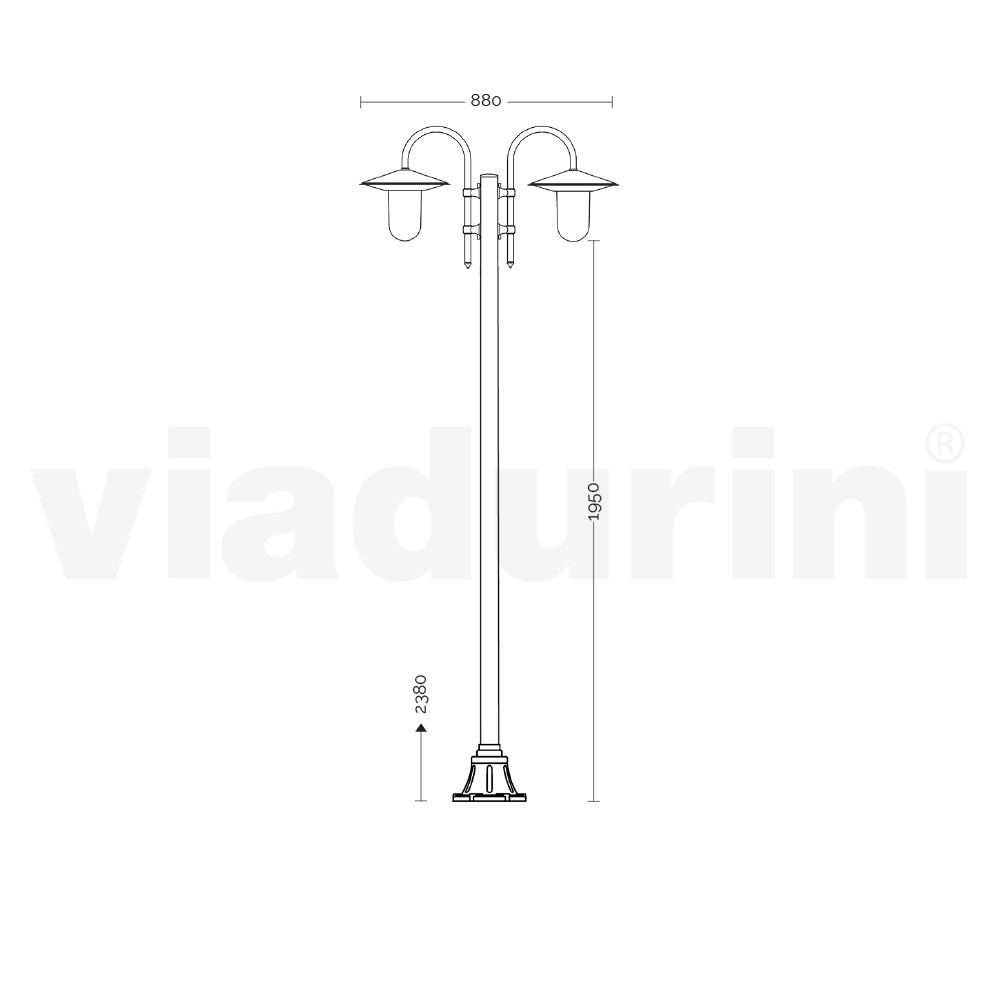 2-světelná zahradní lampa ve vintage stylu s hliníkovou konstrukcí Made in Italy.