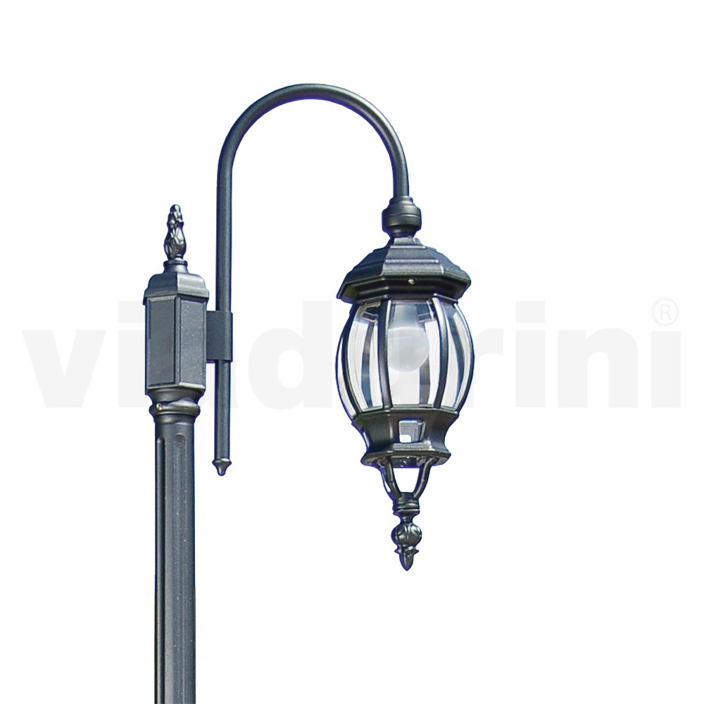 Zahradní lampa s konstrukcí z tlakově litého hliníku s antracitově šedým povrchem a průhledným polykarbonátovým difuzorem. Kompletní se šrouby z nerezové oceli. Výrobek, který pochází z produkce 100% Made in Italy , vyznačující se vytříbeným designem a vintage a romantickou duší , která je jedinečná díky úžasným detailům a rafinovaným a rafinovaným dekoracím. Ideální pro venkovní prostory, jako jsou zahrady, aleje a chodníky, ale také pro uzavřená prostředí, jako jsou bary a restaurace.