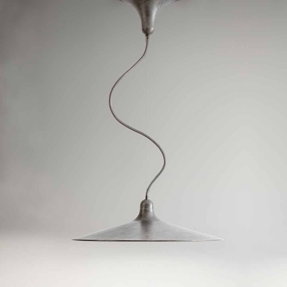 Vintage osvětlení: zavěšení v retro stylu ze starožitného hliníku, Sassmaòr od Alda Bernardiho, vyrobené v Itálii.