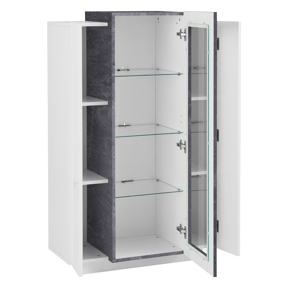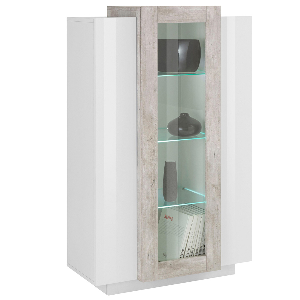 Vitrína se 3 dvířky v lesklém bílém dřevě a 3 povrchových úpravách melamin s nebo bez ledu, vyrobená v Itálii.