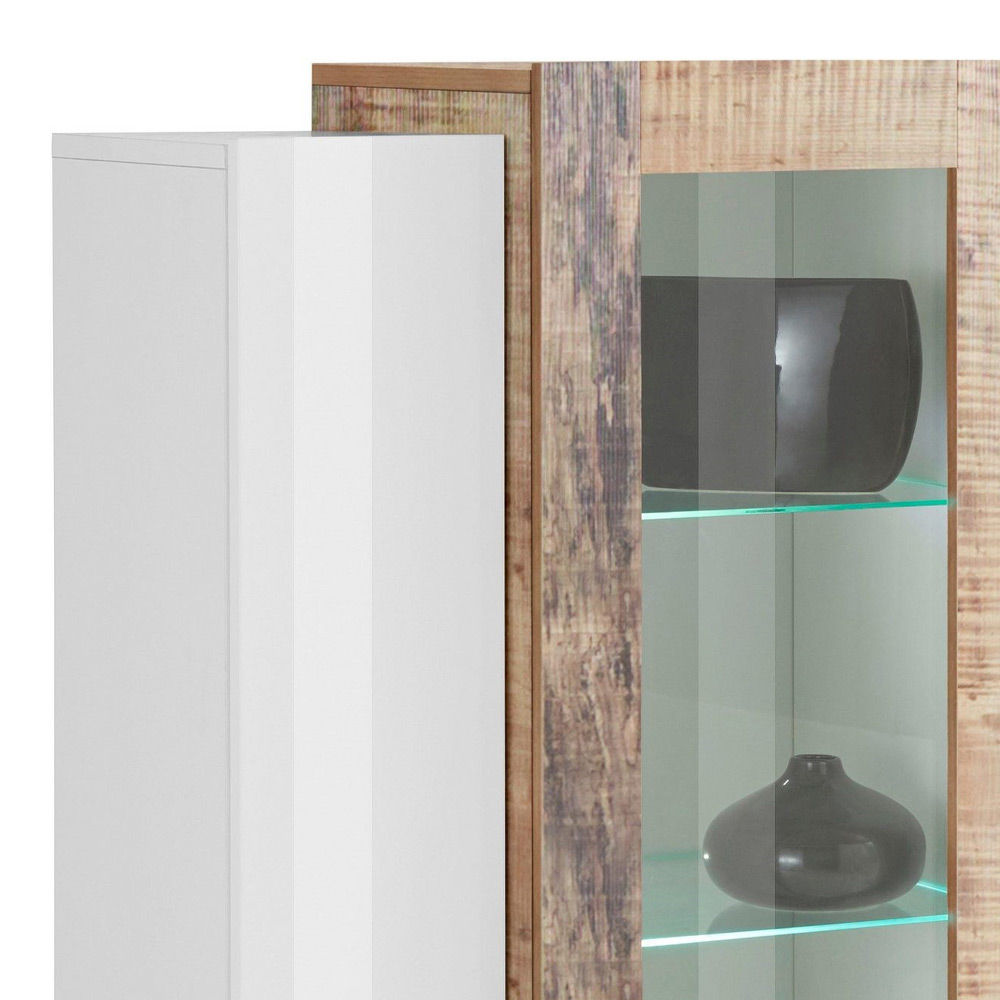 Technické vlastnosti:- Vitrína se 3 dvířky (2 dřevěná se 2 vnitřními policemi každá ze dřeva L 18,4 x H 29,5 x V 111,8 cm a 1 skleněná se 3 vnitřními skleněnými policemi L 36,8 x H 29, 5 x V 11,8 cm)