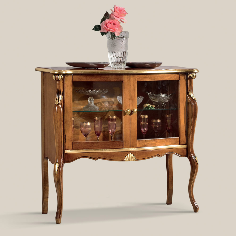 Obývací pokojová vitrína se 2 dveřmi v ořechovém nebo bílém dřevě Made in Italy.