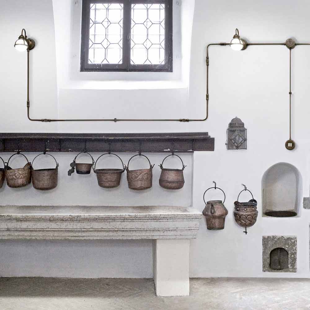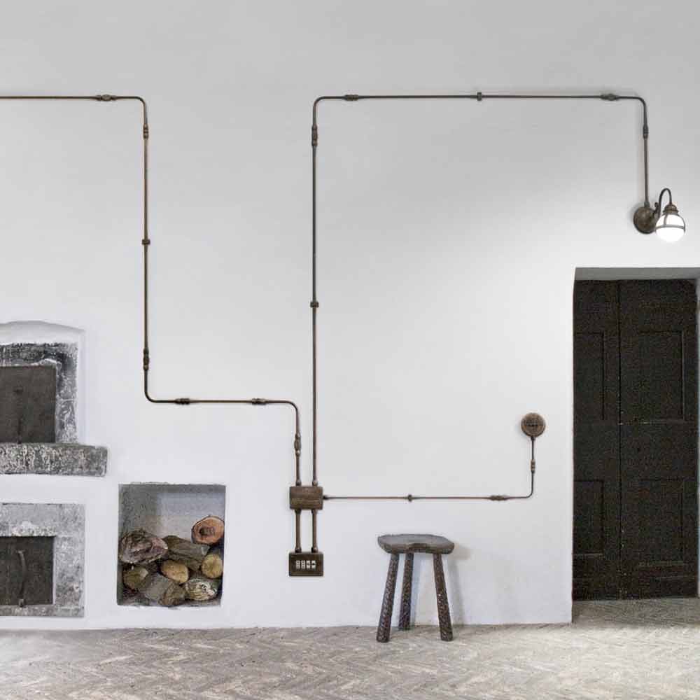 Jedná se o vypínače, armatury, spojovací skříňky, potrubí pro vedení elektrického kabelu v kombinaci s lampami a nástěnnými lampami kolekce Aldo Bernardi.