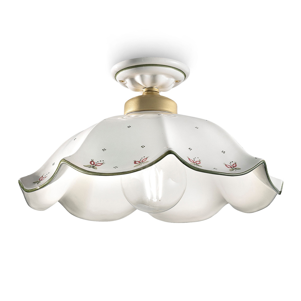 Vintage ručně malované vlnité keramické stropní svítidlo vyrobené v Itálii od Ferroluce.
