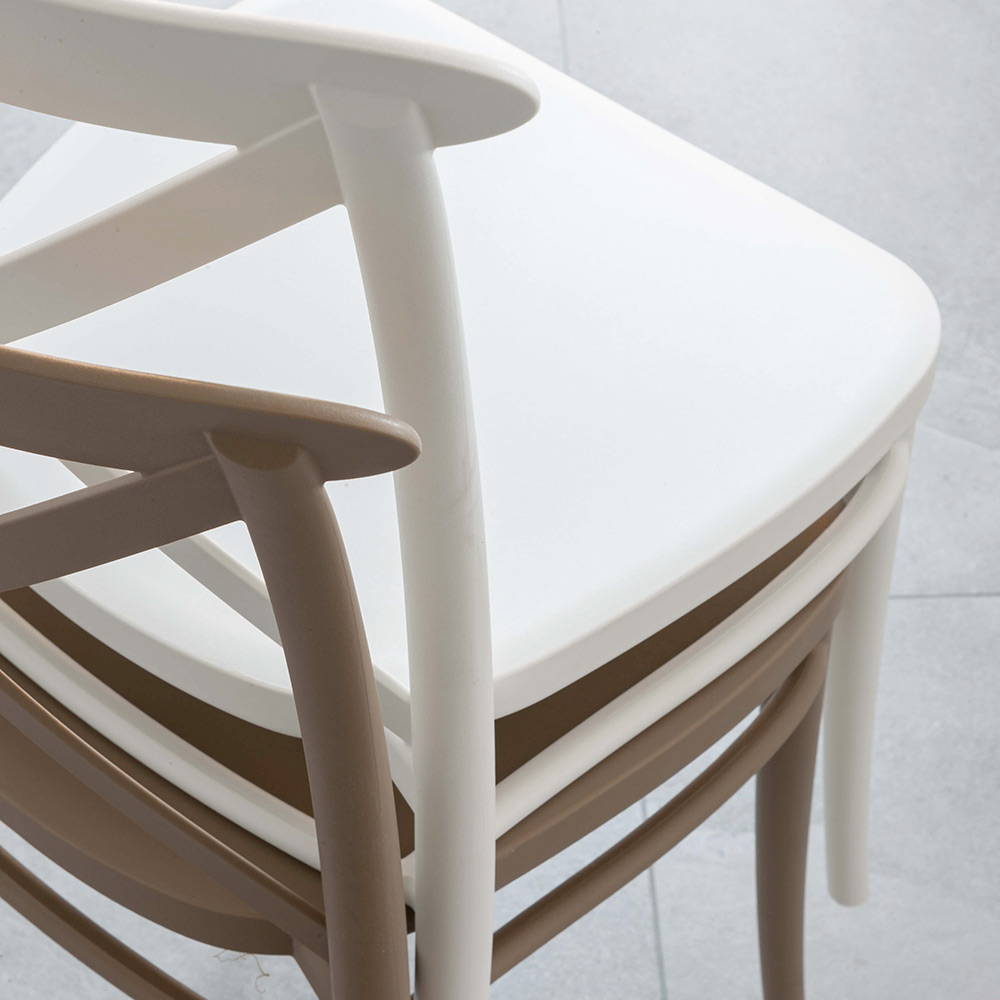 pryskyřice vyztužené skelným vláknem. Tento produkt je určen pro všechny, kteří chtějí spojit funkčnost s jednoduchostí. Ve skutečnosti je tato židle ideální pro začlenění do obývacích prostor, kuchyní a jídelen, vnitřních i vnějších, kde prožíváte každodenní rodinné chvíle a kde je praktičnost zásadní. Díky použitým materiálům k výrobě chceme zákazníkovi zaručit výrobek, který je nejen krásný na pohled, ale také kvalitní a odolný v čase