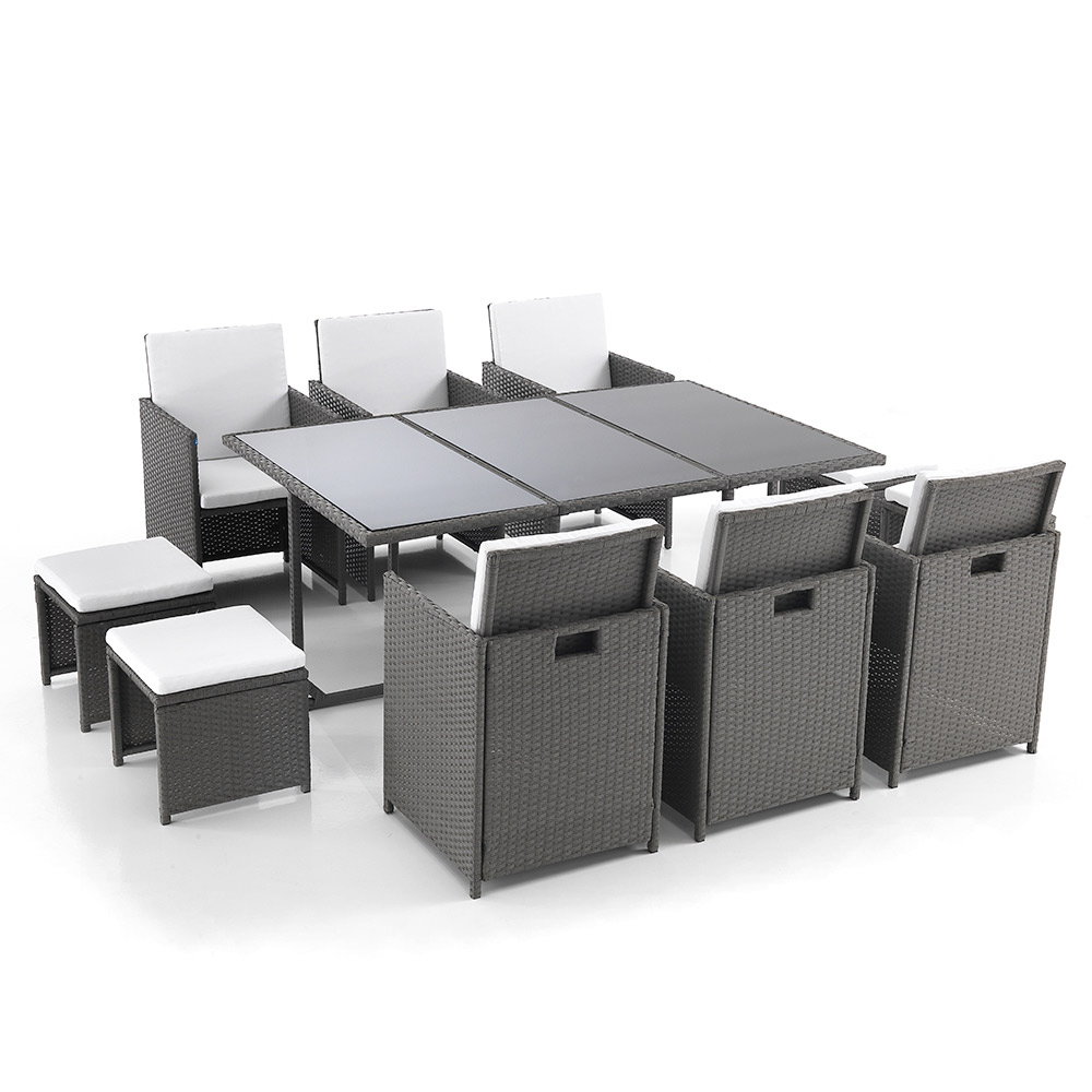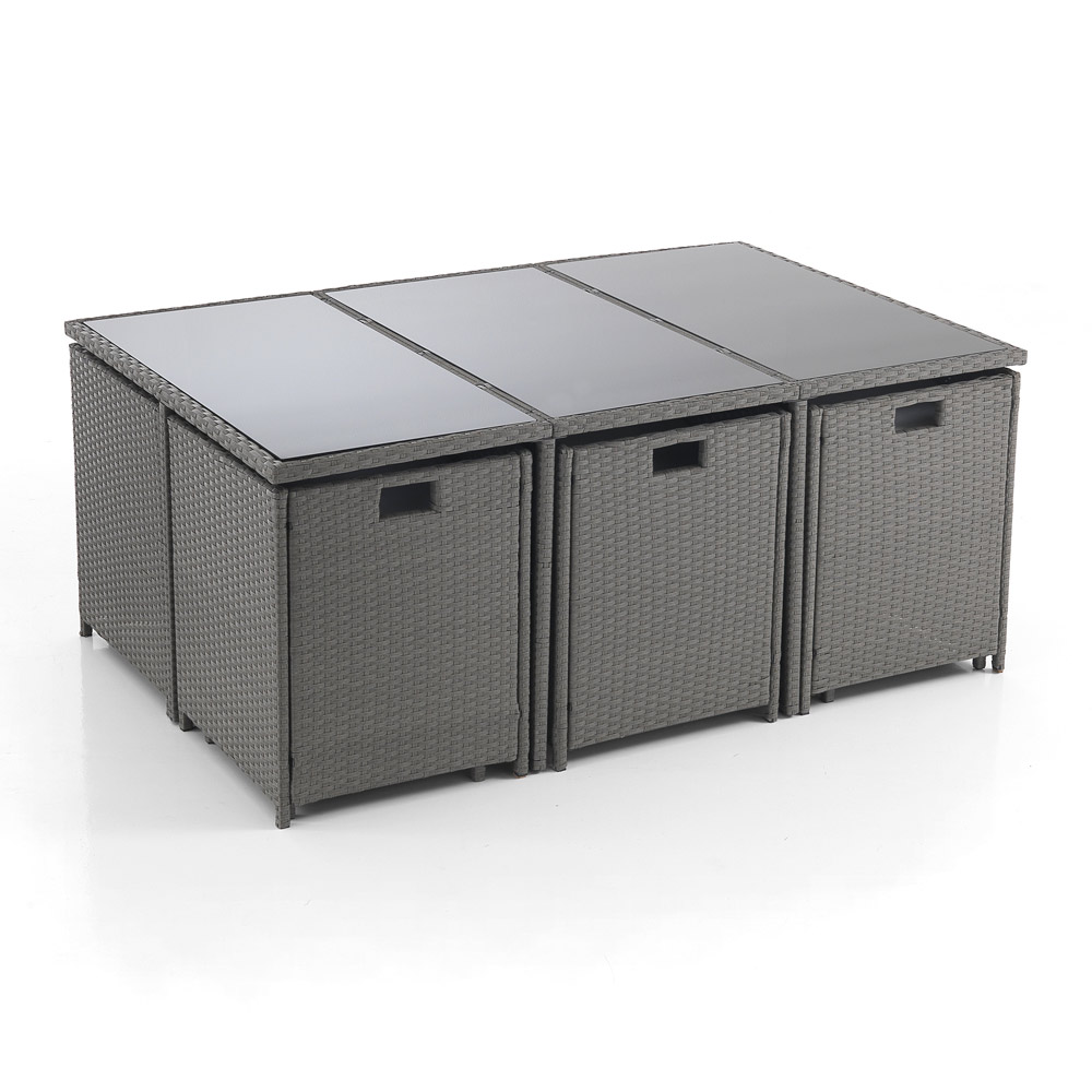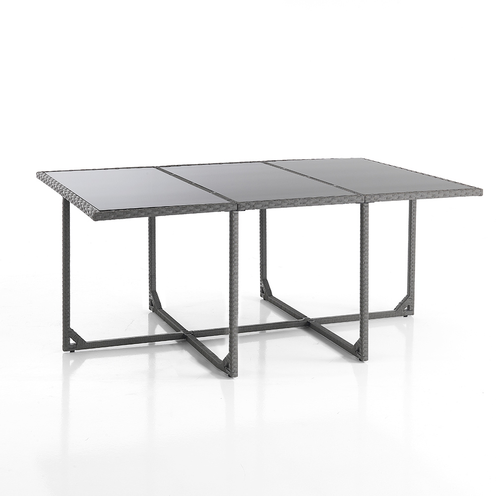 Tato modulární zahradní sada je podstatou všestrannosti a prostorové efektivity . Sada, navržená tak, aby vyhovovala jakémukoli venkovnímu prostředí, obsahuje stylový stůl a odpovídající sedací soupravu , které se spojí do kompaktního, přehledného uspořádání, když se nepoužívá, a promění se v sochu současného designu .