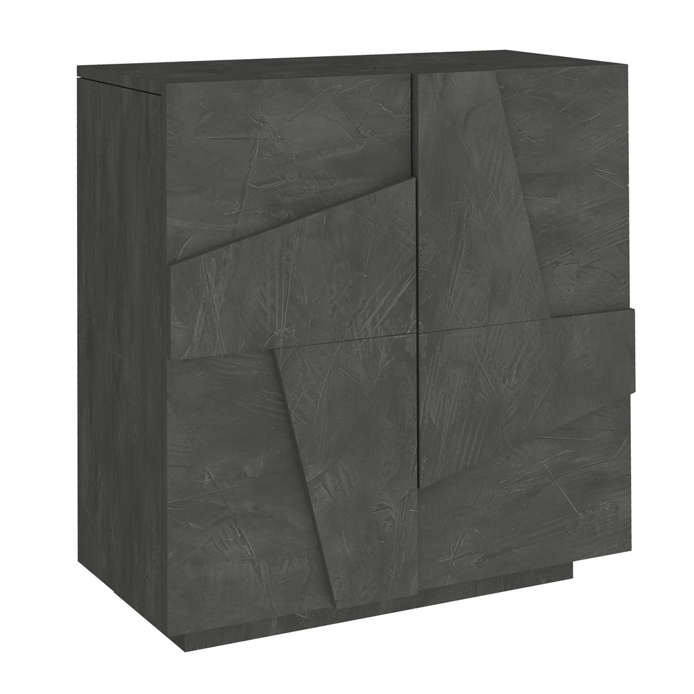 2 výklopných dvířek ozvláštněných geometrickou reliéfní řezbou na povrchu, uzavírající