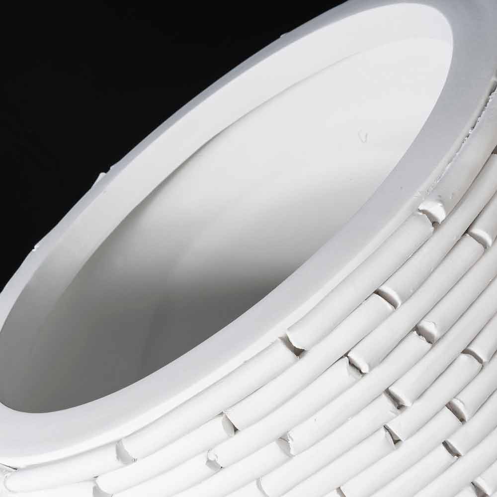 Vysoká váza pro interiéry z matně bílé keramiky ručně vyráběná v Itálii. Použití keramiky a řemeslného zpracování spolu s konkrétním zpracováním, které pokrývá část struktury vázy, představuje vlastnosti, které z ní dělají exkluzivní a rafinovaný dekorativní prvek, zvyšují jeho hodnotu a zdůrazňují jeho kvalitu. Výsledkem je elegantní a obzvláště všestranný doplněk, který se dokáže co nejlépe přizpůsobit jakékoli stylistické situaci. Ideální estetika pro nejrůznější prostředí, od bytového vybavení po hotely, restaurace, smluvní prostory, lázně, ale také jako prostředí pro akce a svatby.