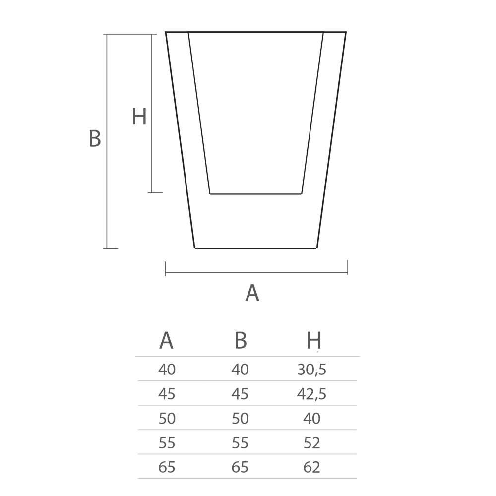 - D 50 x H 50 x V 40 cm;