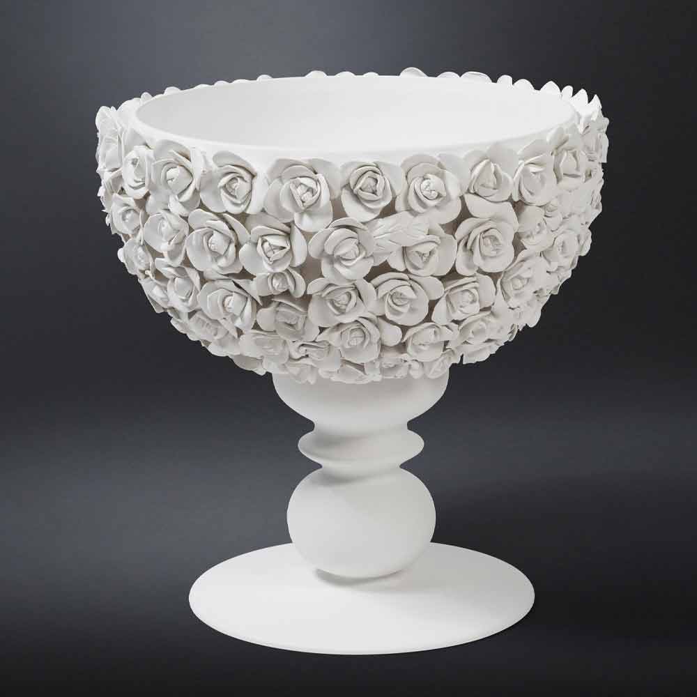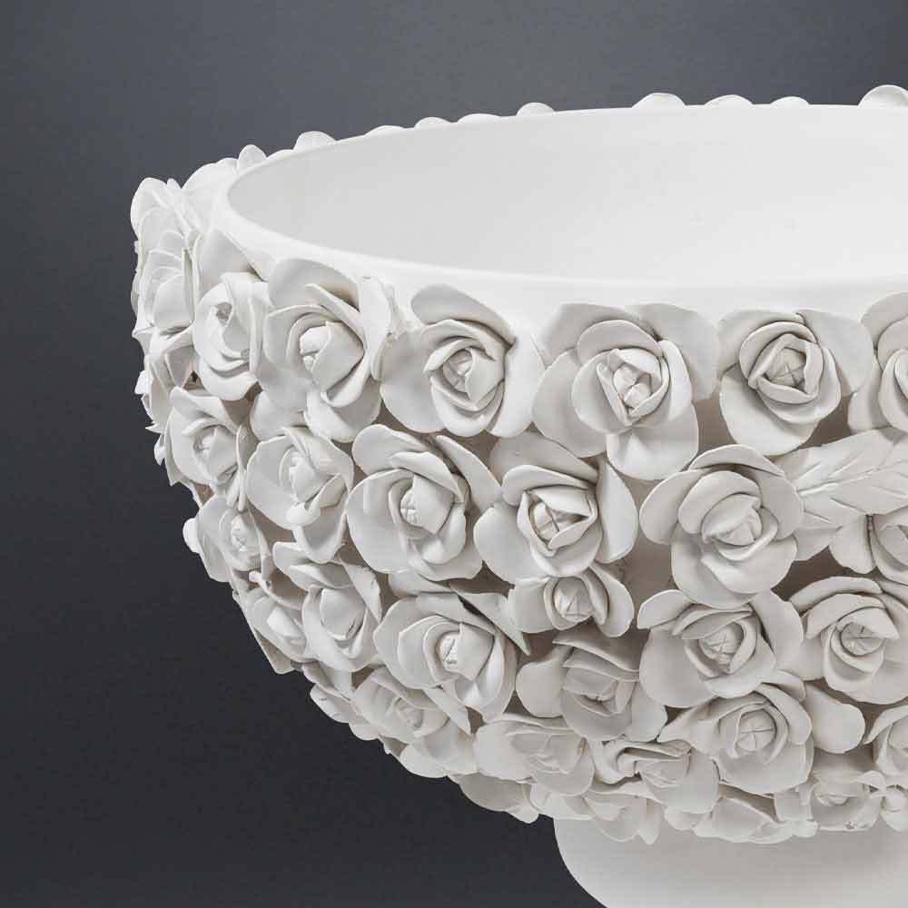 Vnitřní váza z matně bílé keramiky ručně vyráběná v Itálii. Elegance a klasický styl jsou hlavními rysy tohoto nádherného dekorativního prvku, jehož postava je podtržena jemnými a klikatými liniemi pro design, který připomíná starověké sochy typické pro italské umění. K obohacení estetiky slouží zejména květinové zpracování, které ještě více zvyšuje rafinovanou stránku produktu. Použití keramiky a řemeslného zpracování podtrhuje její hodnotu a kvalitu pro výsledek schopný přizpůsobit se jakékoli stylistické situaci. Ideální estetika pro nejrůznější prostředí, od bytového vybavení po hotely, restaurace, smluvní prostory, lázně, ale také jako prostředí pro akce a svatby.