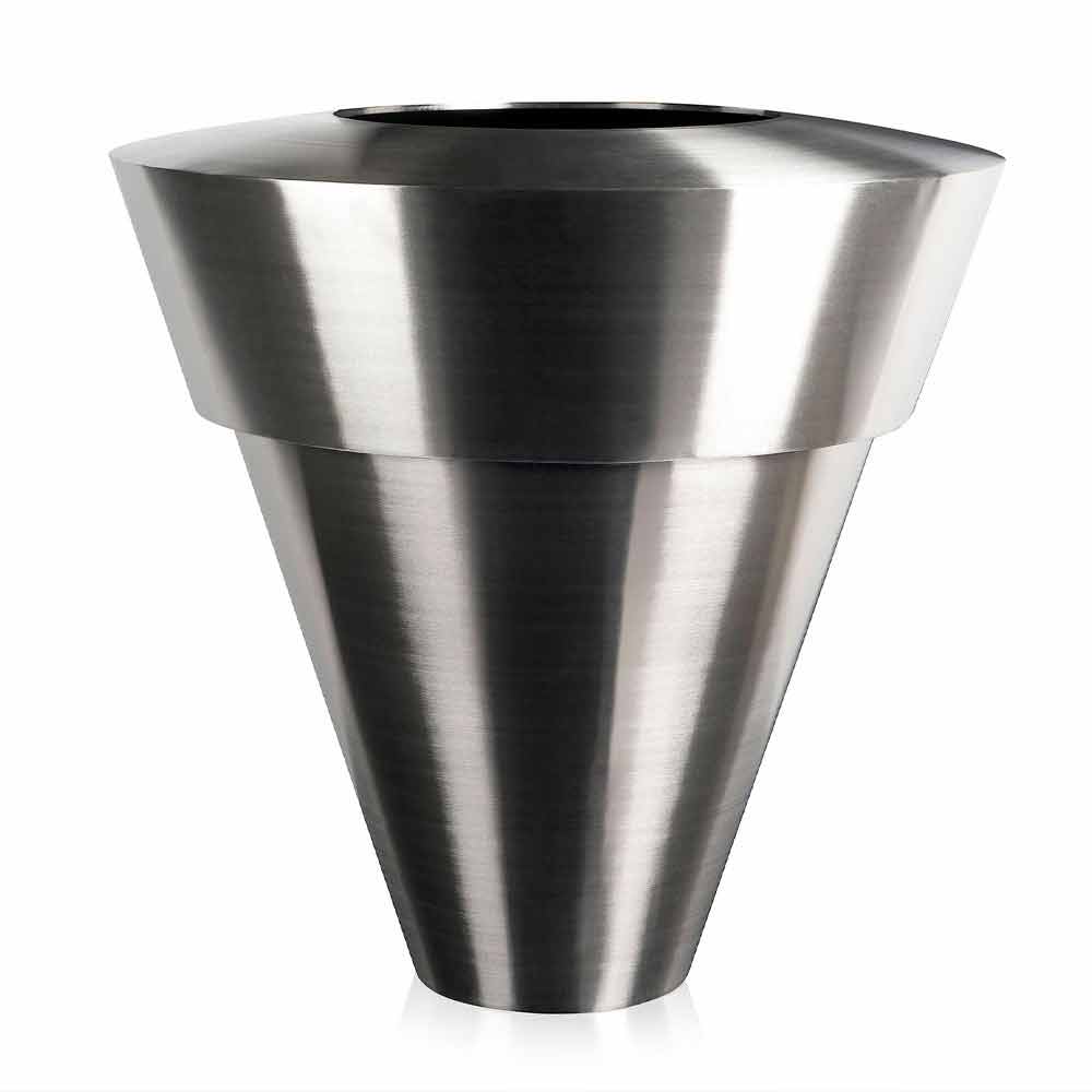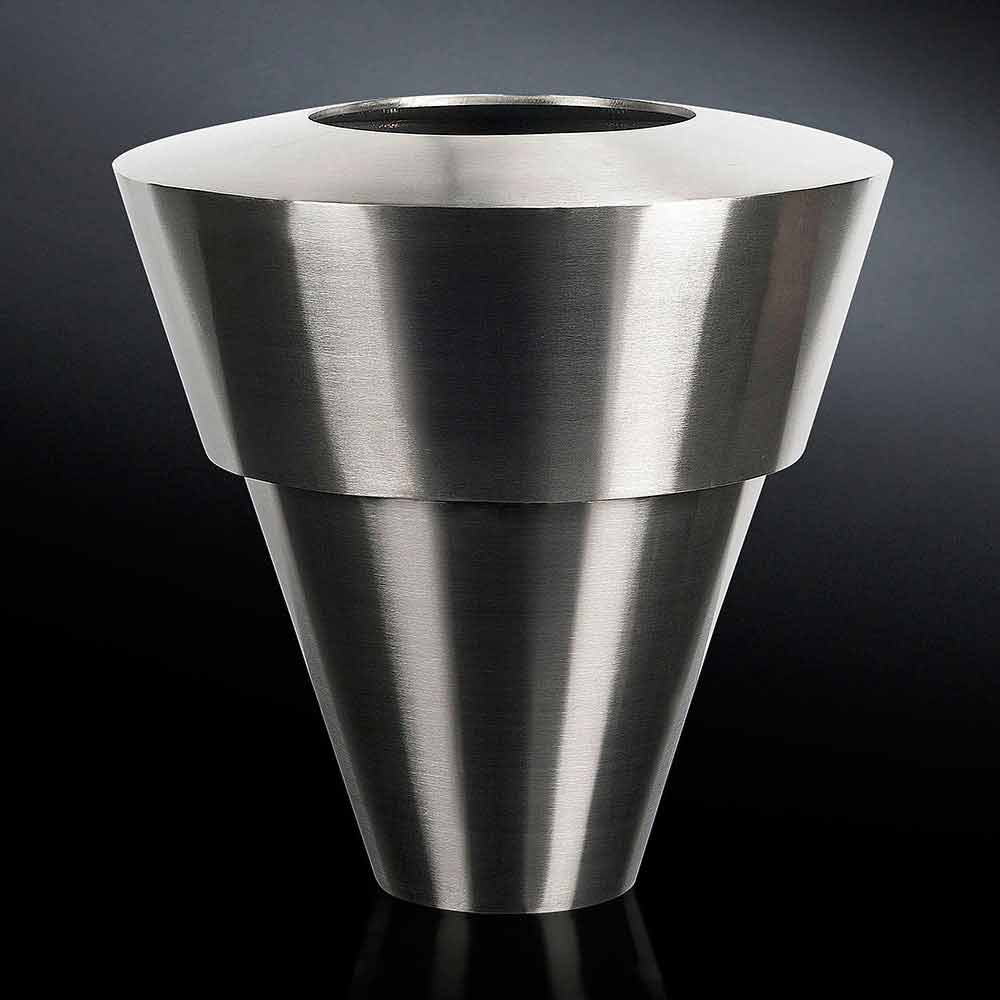 Elegantní váza do interiéru z kartáčované oceli vyrobené v Itálii.