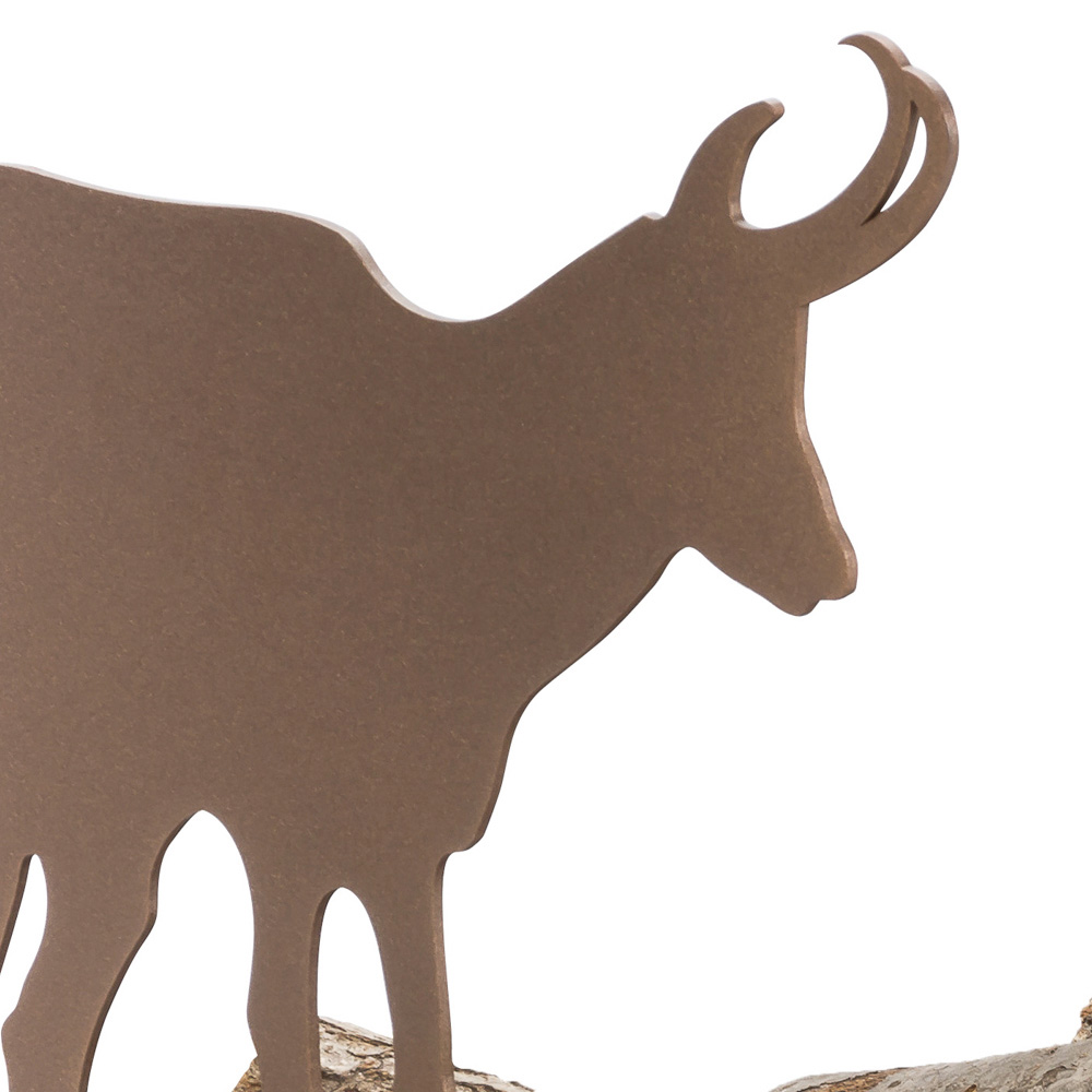 Moderní designový držák kulatiny z hnědé oceli s dekorací ve tvaru kozorožce s doplňky, vyrobený v Itálii.