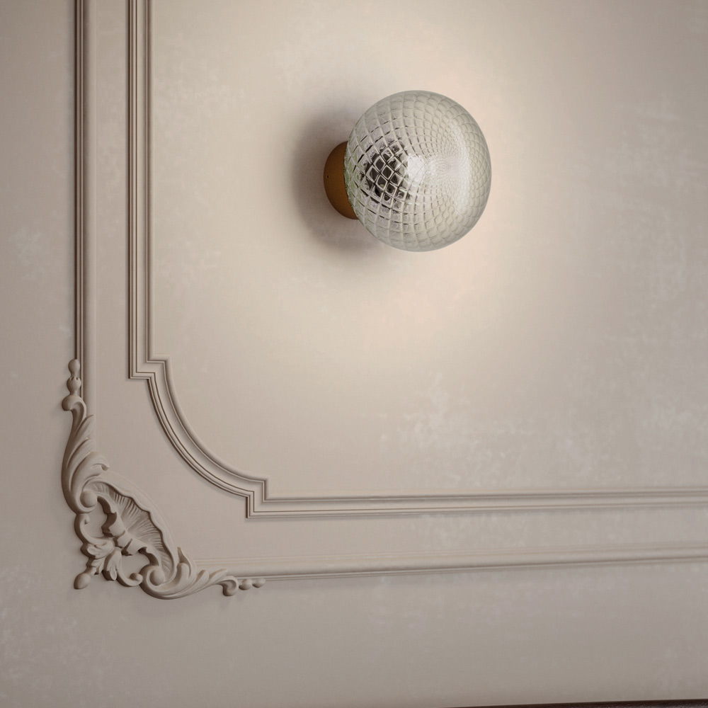 Nástěnné svítidlo z přírodní mosazi a průhledného skla Made in Italy