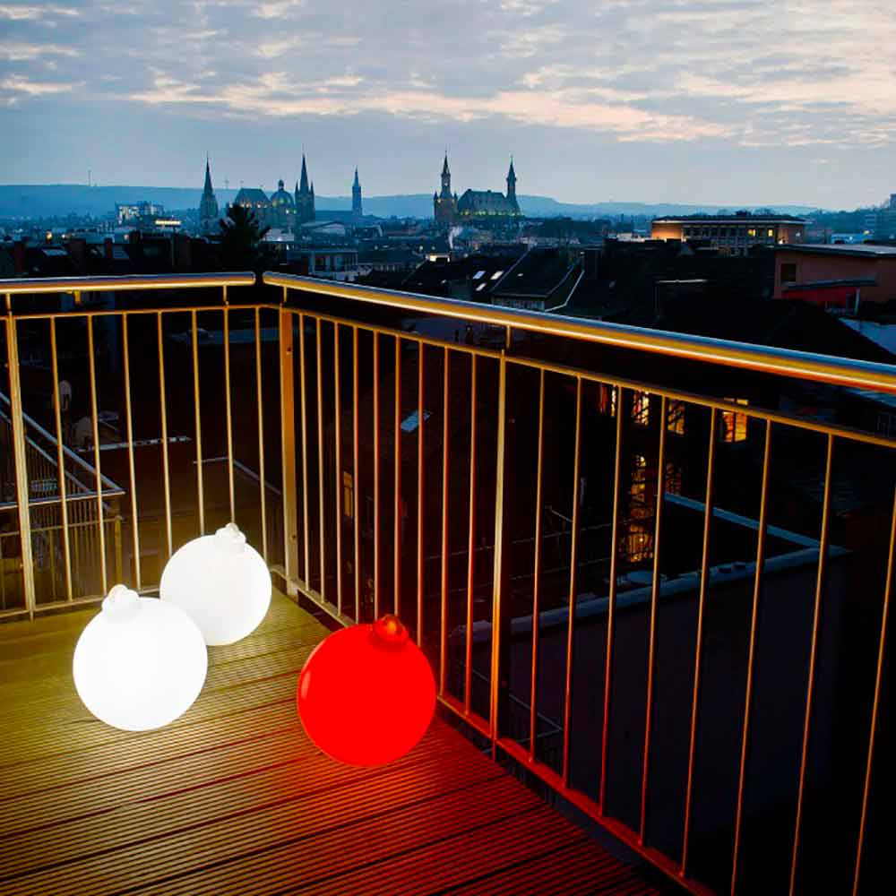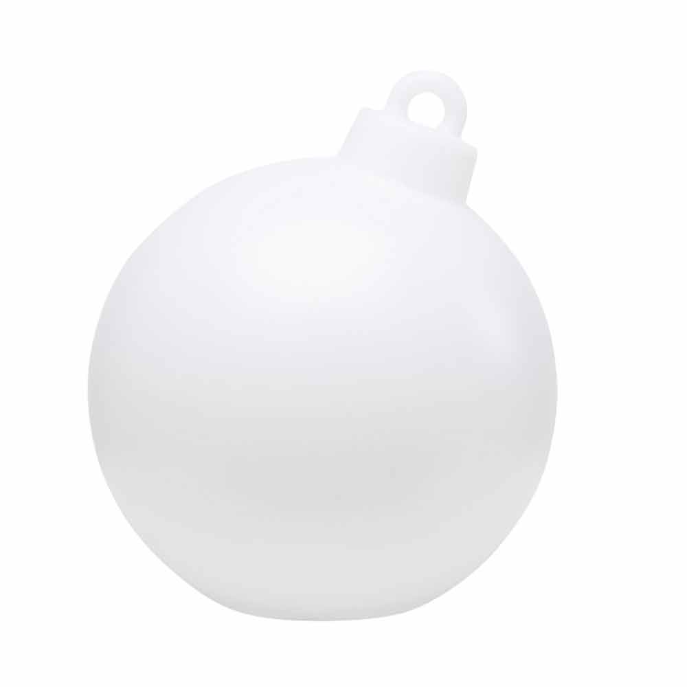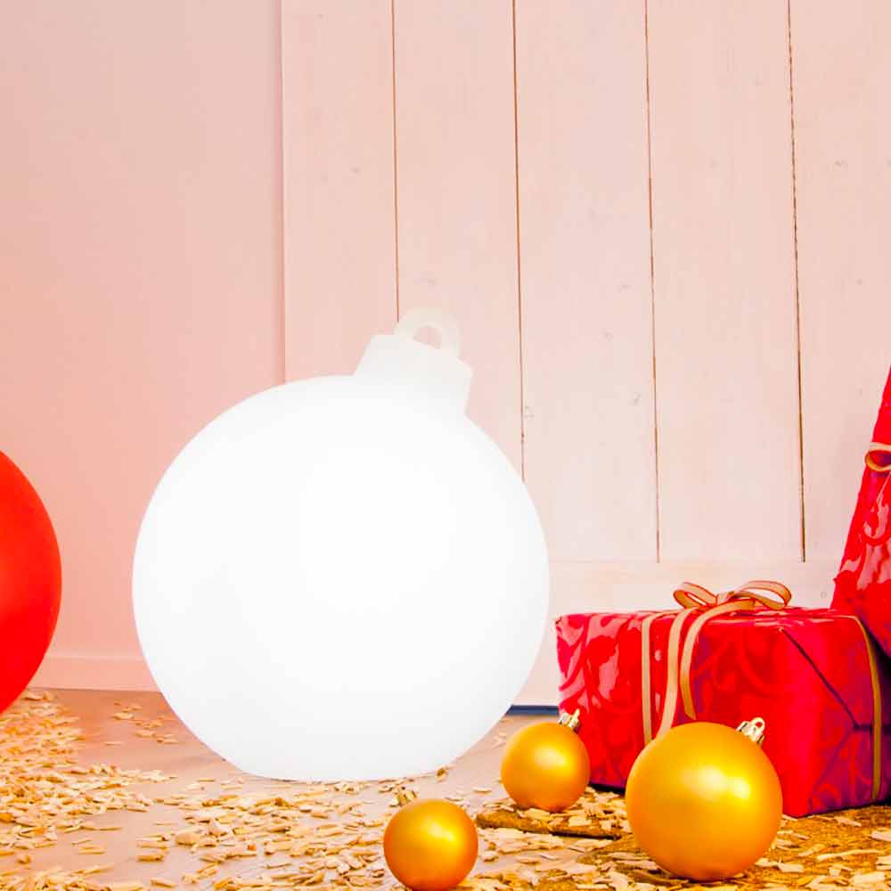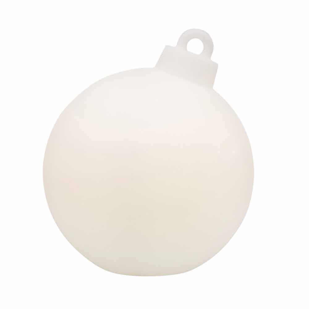Stojací lampa ve tvaru vánoční koule z bílého polyethylenu, vícebarevné připojení LED, solární nebo E27 pro vnitřní nebo venkovní použití.