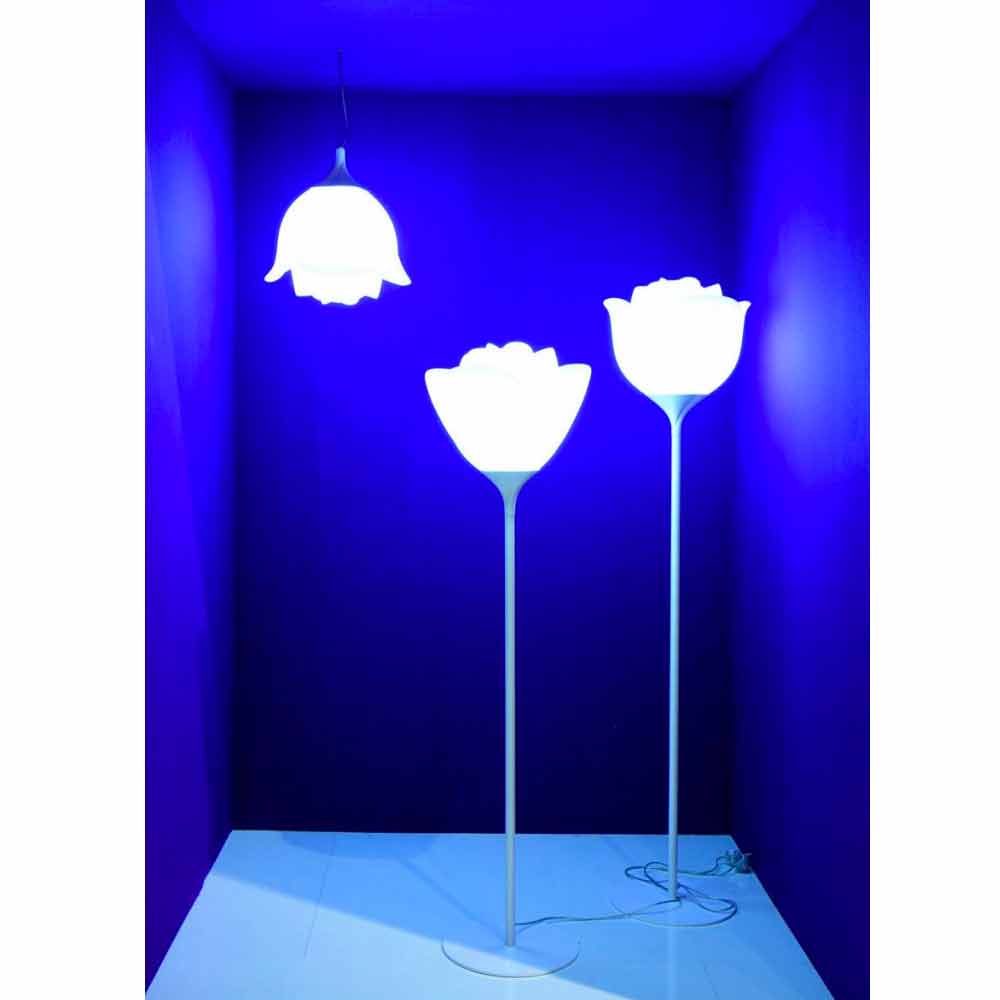 Baby Love , okrasná lampa se stylizovaným růžovým profilem může mít různé podoby: originální stojací lampu k dispozici v různých výškách, elegantní stojací lampu, stropní lustr, nástěnnou lampu a venkovní lampu ve verzi Waterproof a Garden, kde jeho design je navržen. upřednostňovat rychlejší a úplnější odstraňování dešťové vody; Baby Love je k dispozici v různých barevných odstínech a je osvětlena lampou s nízkou spotřebou energie.