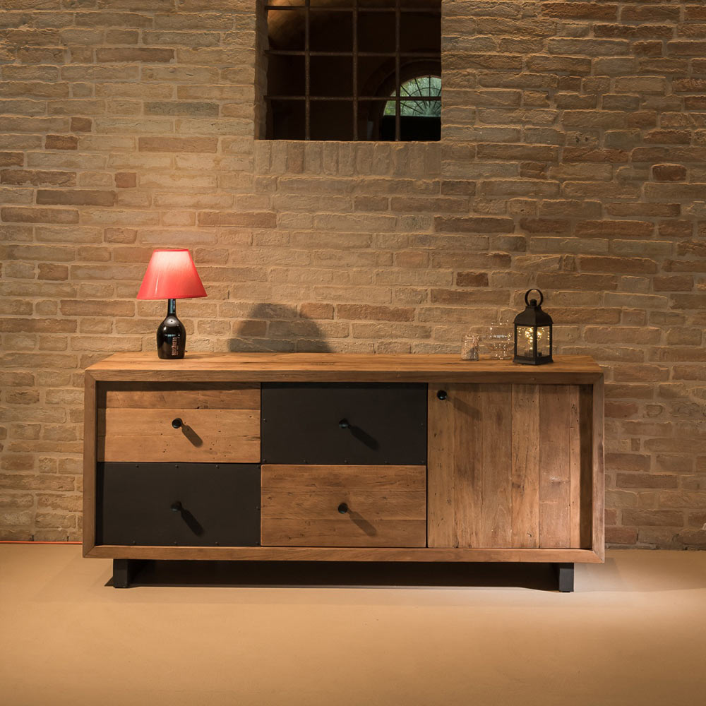 Tento zařizovací set je doslova unikátní právě tím, že ztělesňuje svéráznou historii žité hmoty. Zpracování probíhá z větší části podle řemeslných postupů . Každý škrábanec a nedokonalost, každá jizva na dřevě svědčí o originalitě minulosti, která nabývá nového života. Tropické dřevo legálně recyklované ze starých artefaktů, lodí a opuštěných budov je odborně ošetřeno a kartáčováno, aby znovu získalo důstojnost a lesk. Tento produkt kombinuje podstatu rustikálního vkusu s tvary současného designu as některými detaily industriálního stylu .