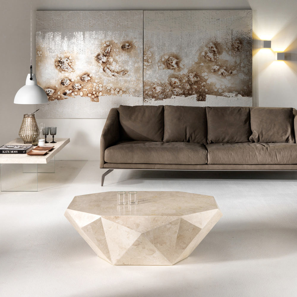 Velké množství tónů a barev kamene v kombinaci s tisíciletou petrifikací organických, živočišných nebo rostlinných zbytků a design podstav, vytvořený talentovanými italskými architekty a designéry, tvoří celek, který není riskantní definovat. jako umělecké dílo.