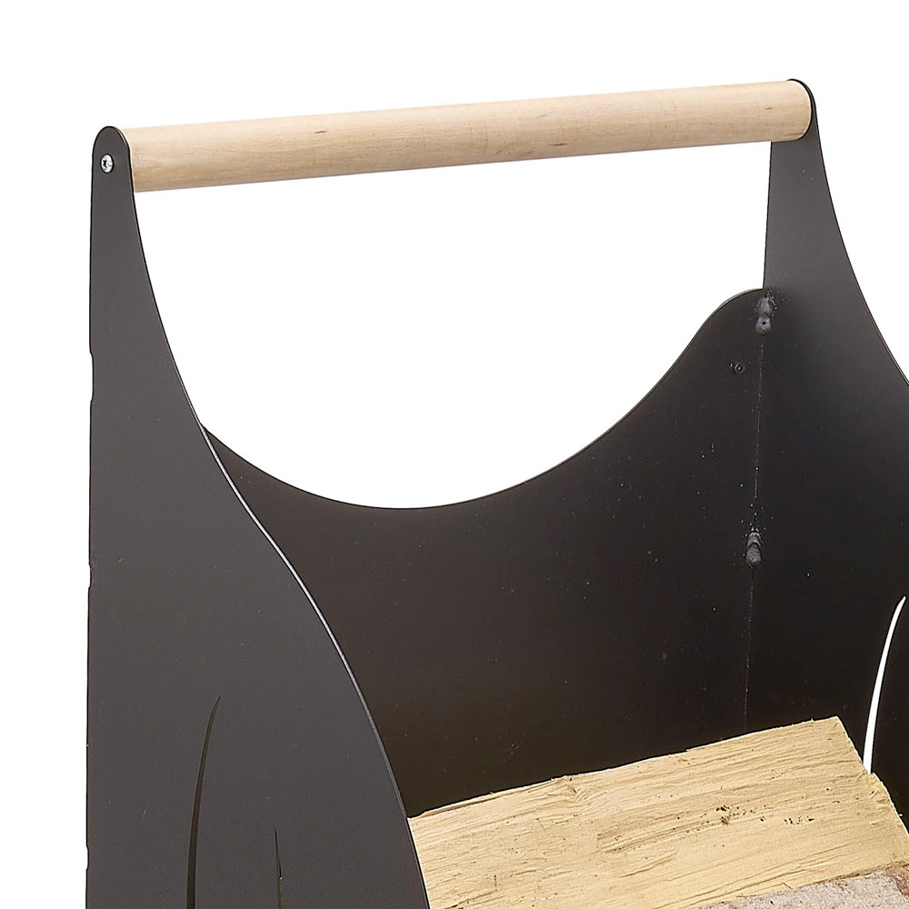 Vozík na kulatinu vyrobený z netoxického černého práškově lakovaného železa , s vysoce kvalitní dřevěnou rukojetí a kolečky navržený, zkonstruovaný a ručně vyrobený v Itálii . Výrobek vyznačující se jednoduchou a zvláště funkční estetikou schopný podtrhnout a zvýraznit jak použití samotného držáku kulatiny, tak jeho úžasnou estetickou hodnotu. Jeho moderní a vytříbený design dokáže podtrhnout krásu krbu i okolního nábytku, takže je ideální pro dotvoření různých domácích prostředí, kterým dodá punc originality .