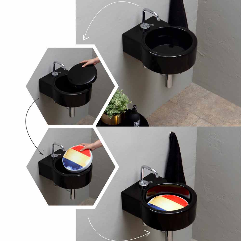 Zvláštností je, že se jedná o ruční umyvadlo s nepřetržitým průtokem vody, s možností instalace jako podpěry nebo zavěšení.