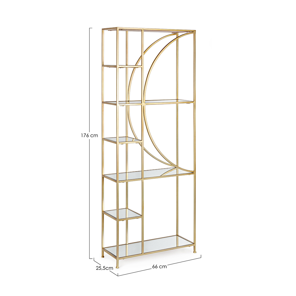 Tato volně stojící knihovna má ocelový rám s epoxidovou práškovou barvou a skleněné police .