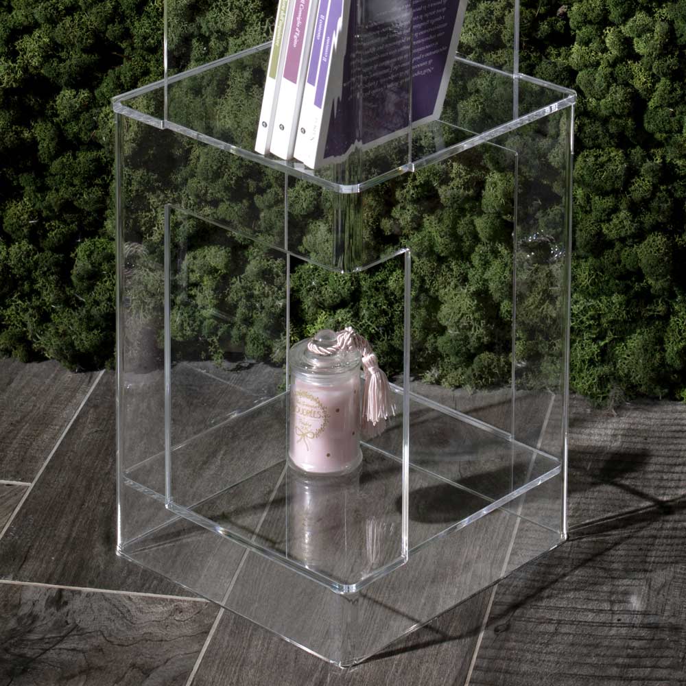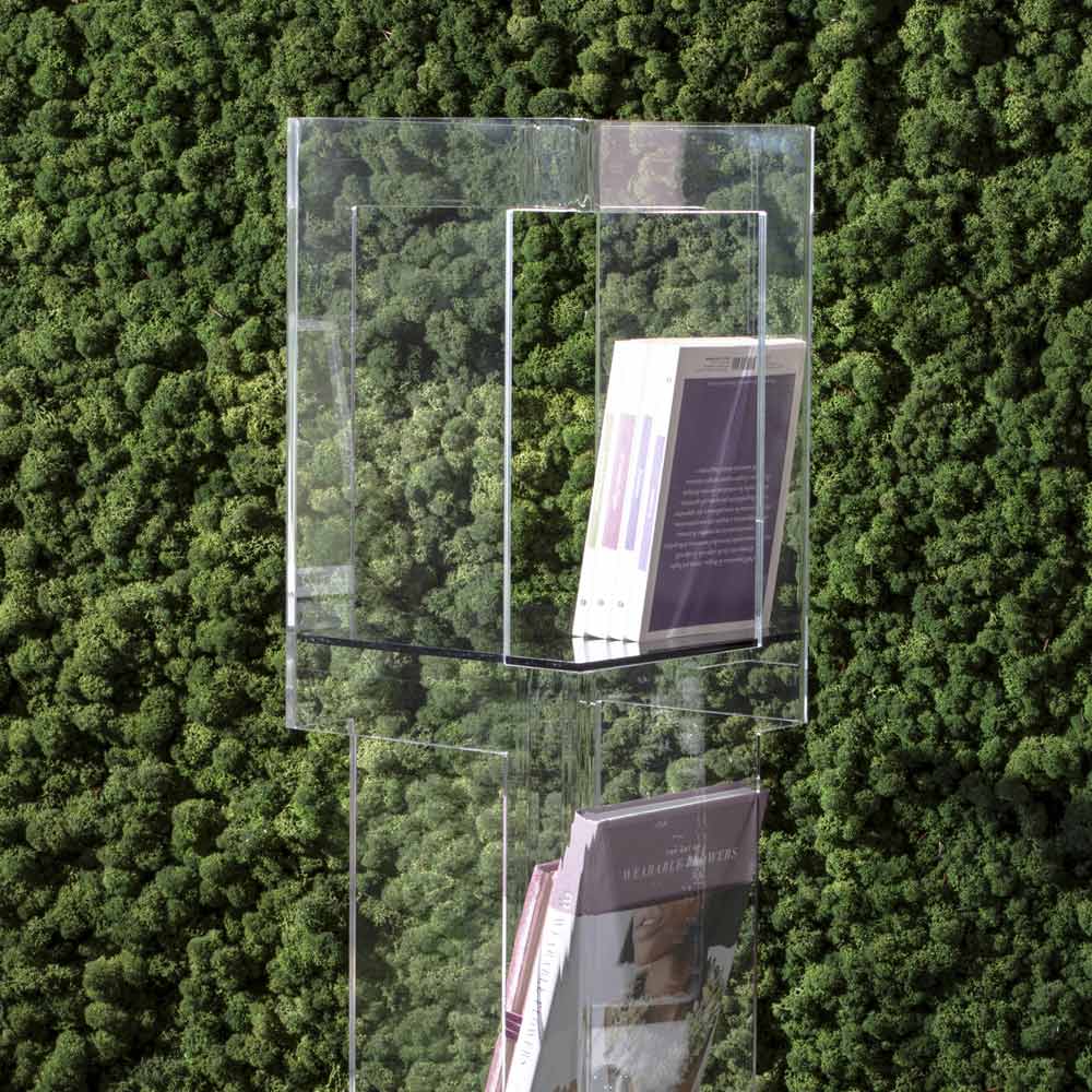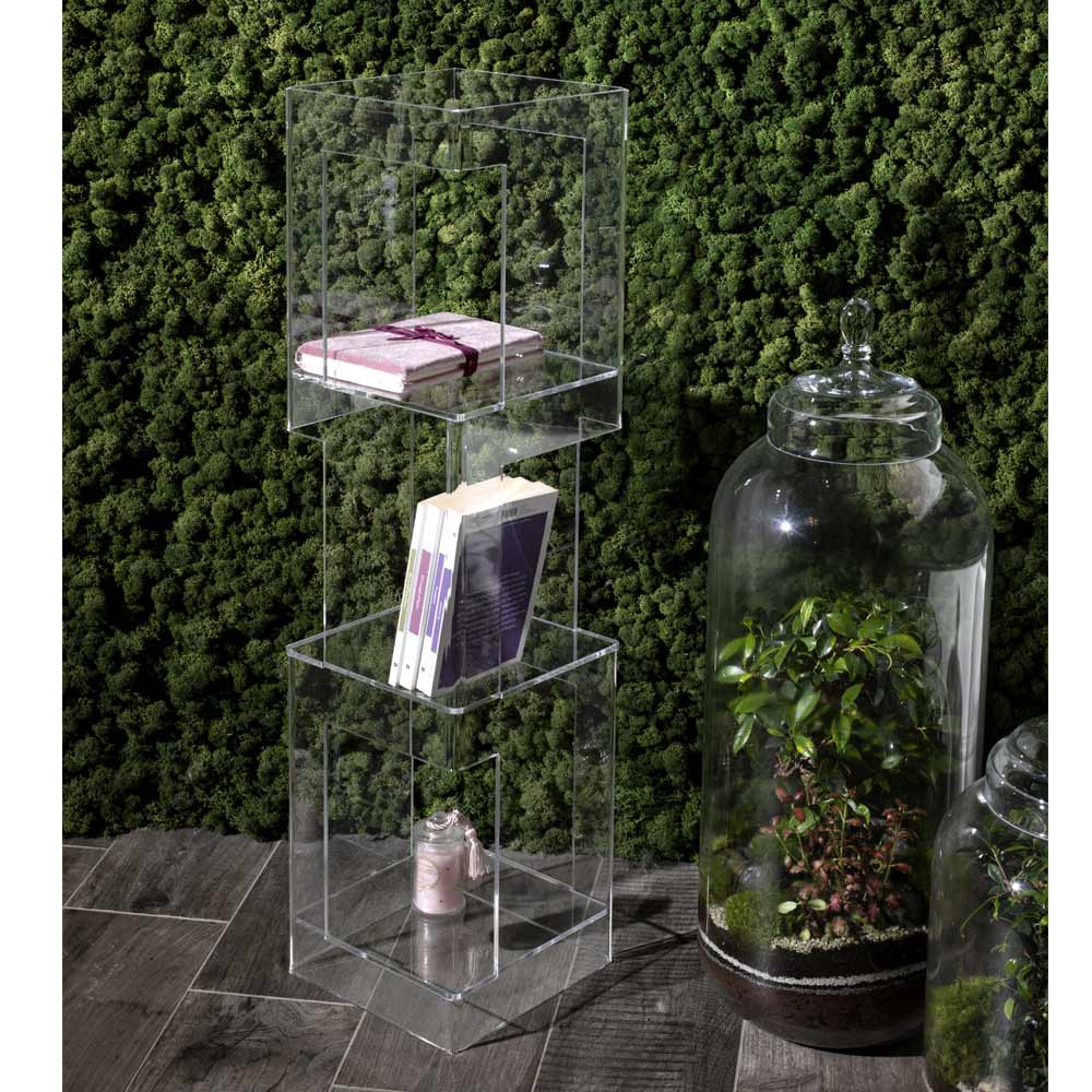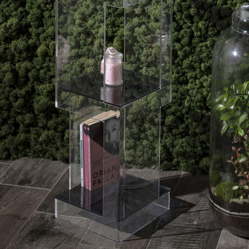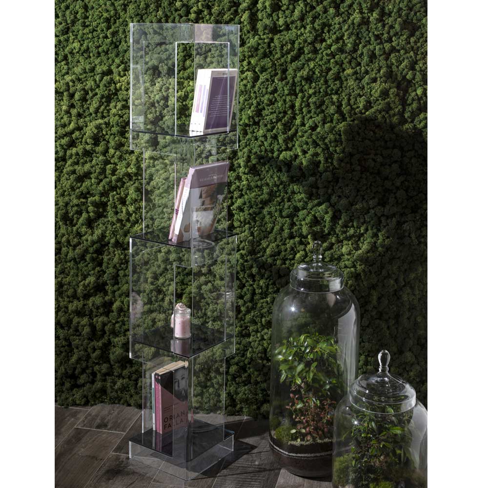 Volně stojící knihovna z akrylového křišťálu 2 povrchové úpravy a 2 velikosti vyrobené v Itálii.