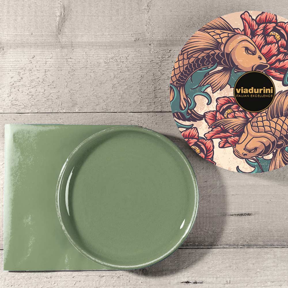 ručně vyráběné v Itálii smaltované uvnitř se zeleným povrchem, barvou připomínající jaro a kvetení rostlin, přinášející zpět původní kontakt s přírodou. Každý prvek kompozice je charakterizován zvláštními detaily, jako je