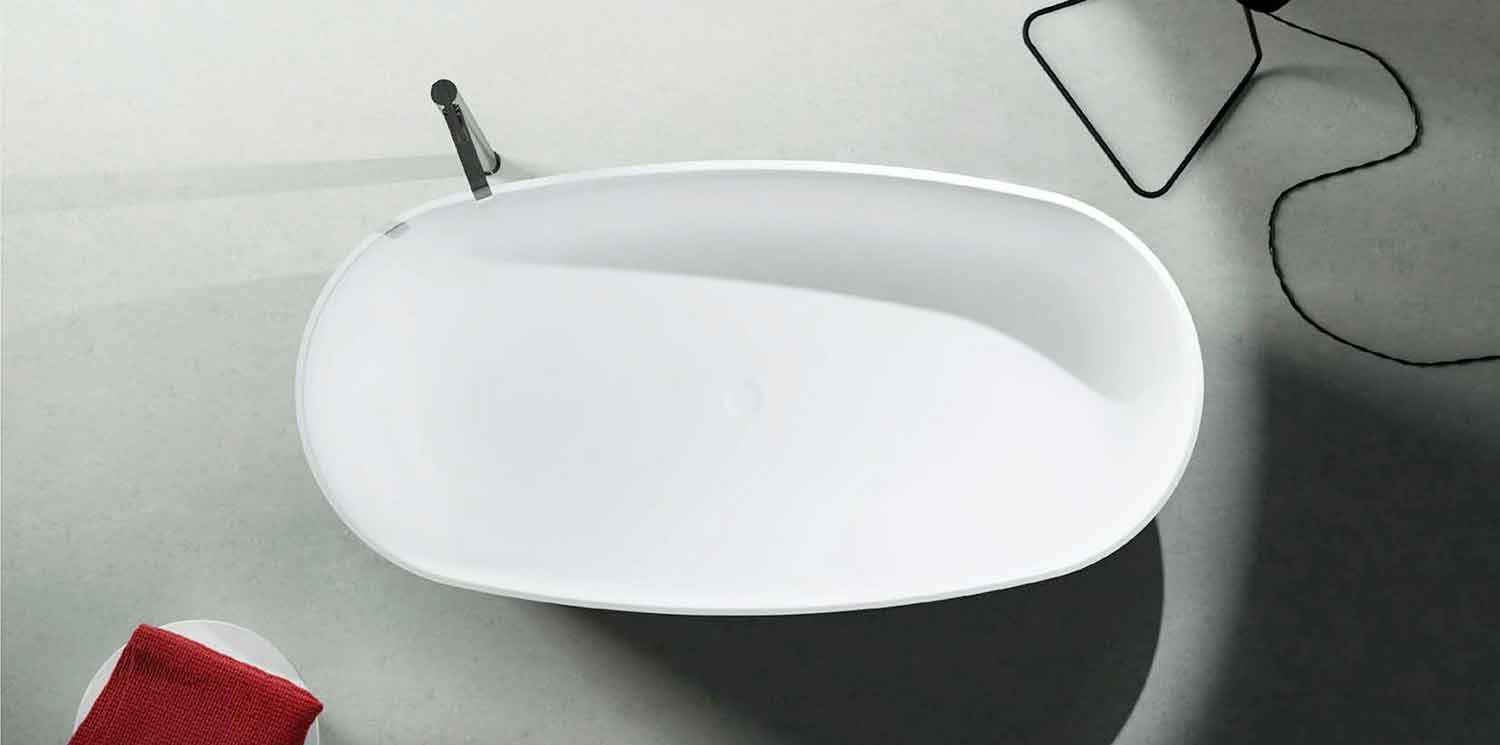 Dongo je monobloková vana s volně stojící instalací v Solid Surface.