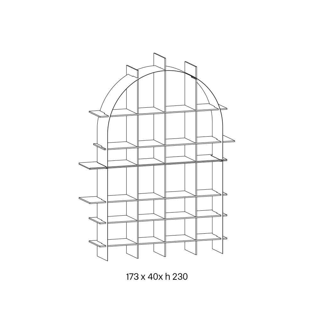 Jeho zvláštnost spočívá ve vzájemně propojené konstrukci z tenkého plechu ve tvaru oblouku s povrchem z kartáčovaného bronzu, který se integruje do kompozice, která poskytuje efekt extrémního zdokonalení a geometrie.